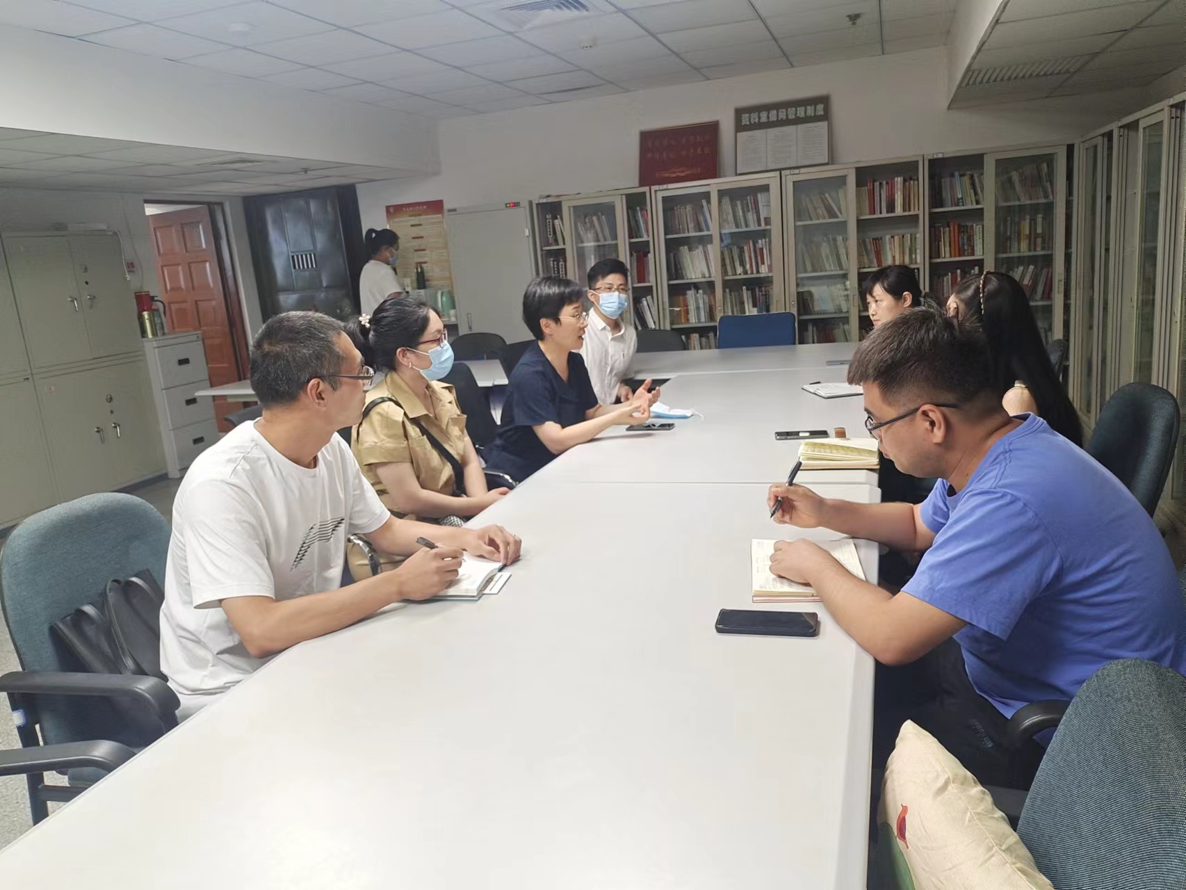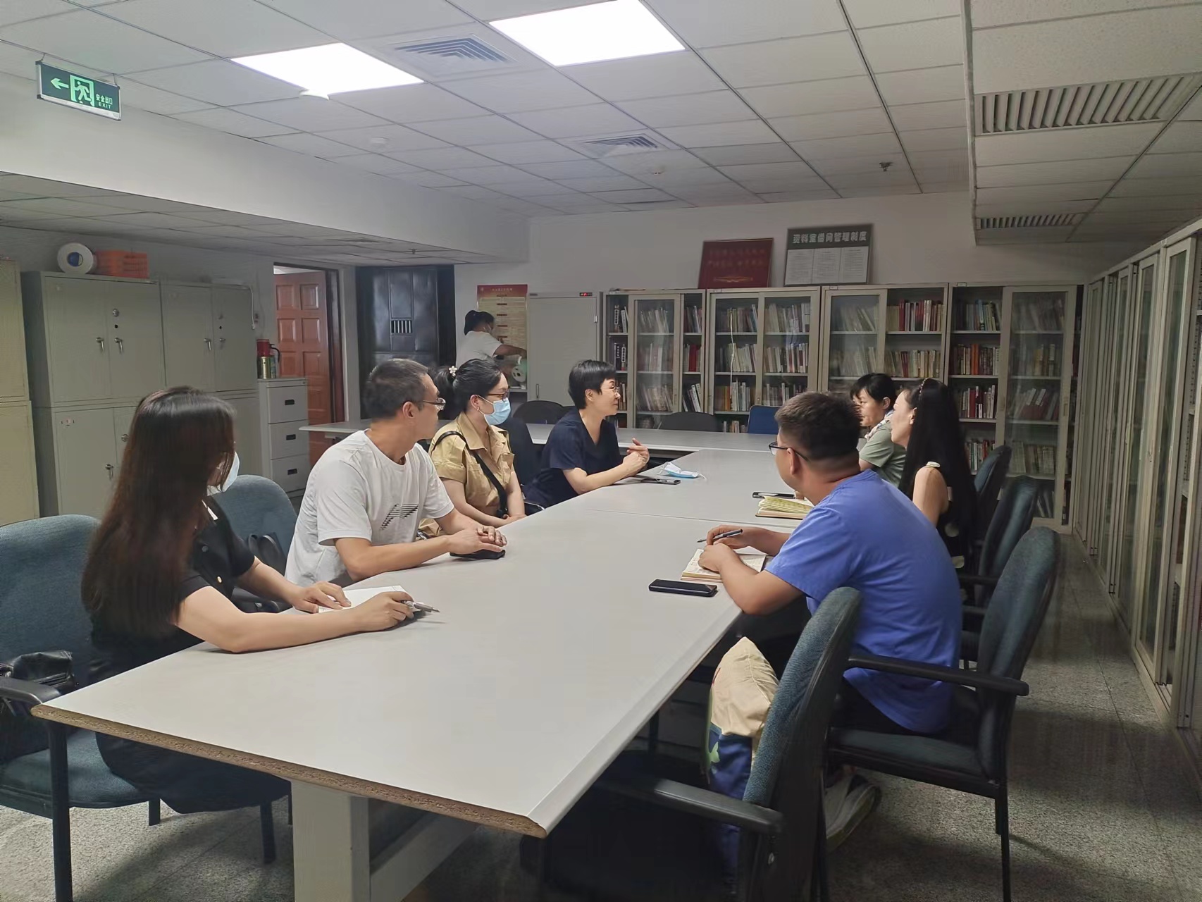 为贯彻习近平新时代中国特色社会主义思想,按照习近平总书记“八个相统一”要求,落实立德树人根本任务,推动思政课实践教学改革创新和标准化建设,完善思政课教学体系,推动思政课内涵与外延发展“双提升”,优化思政实践教学育人效果,2022年7月21日,马克思主义学院院长李玉梅带领老师们走访了周恩来邓颖超纪念馆,就双方共建和具体实践教学改革环节进行了深入交流。周恩来邓颖超纪念馆王乃嘉主任、王怀斌老师和副研究馆员盖金香老师参与了座谈交流。