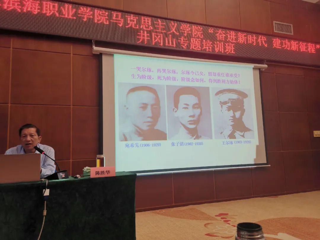 专题教学中,中国井冈山干部学院陈胜华教授为全体教师作了“井冈山斗争与井冈山精神”主题教学,教授回顾历史、旁征博引,阐述了跨时空的井冈山精神、波澜壮阔的中国共产党发展史,以大量丰富详实的历史史料,深刻解读中国共产党百年历程与启示。最后,陈教授勉励大家要做有信仰、有担当、有节气的人,将井冈山精神内化于心,将精神的力量转化为做事的干劲。