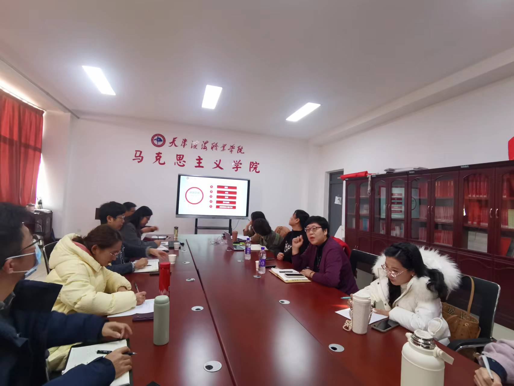 为提升思政教师的教学能力和教育理念,进一步强化师德师风建设,马克思主义学院于2023年11月29日下午在主教106会议室开展了教师能力提升集体备课会,此次集体备课会包括三部分议题,首先邀请教务督导王春燕和大学语文刘洪英两位大咖为马院老师们传经送宝,提升教师课堂管理能力,其次,教师集体备课,由刘庆老师和张赫老师为大家进行教学展示,最后开展师德专项学习,提升教师的师德水平。党委书记王建枝莅临指导工作,并与老师们深切交流。