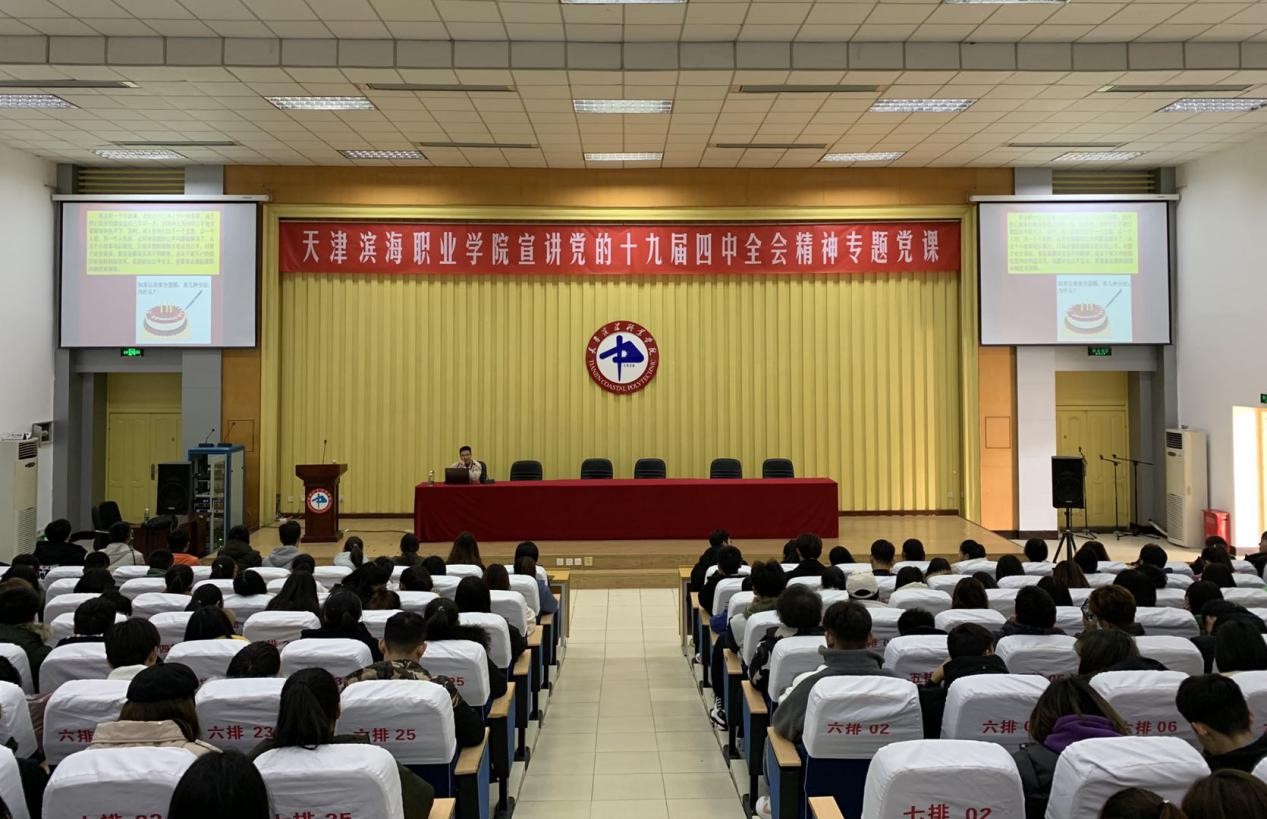 为了进一步学习宣传贯彻党的十九届四中全会精神,按照市教育两委和区教体局党委的工作要求,11月28日下午,马克思学主义院在报告厅组织十九届四中全会精神专题宣讲会。马克思主义学院郭占军老师为青年马克思主义研习会、延安精神研究会、新媒体中心三个社团全体成员以及全院各系入党积极分子、班团干部等400余名学生干部代表进行了十九届四中全会精神的宣讲。马克思主义学院副院长李玉梅同志主持宣讲会。