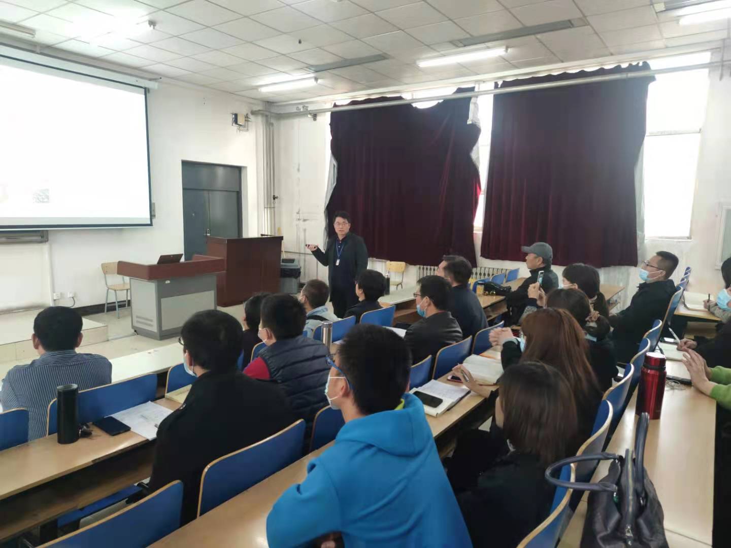 在一个多小时的讲座中,王洪军副院长从中华民族是一个重视历史的民族导入,以历次中国共产党代表大会为主线,回顾了党的创建过程、党的革命历程和党的自身建设,讲述了中国共产党经受住了各种挑战考验而不断发展壮大的历史。王红军副院长的讲座语言幽默风趣、内容丰富、信息量大,通过鲜活的案例与翔实的数据加深了老师们对中国共产党百年历史的认知和了解。最后,王红军副院长通过对比苏联的历史虚无主义和美国的“美化华盛顿”运动,提醒老师们要警惕新时代背景下的历史虚无主义,提高思想认识和政治站位,牢记共产党员的初心与使命,增强“四个意识”、坚定“四个自信”。