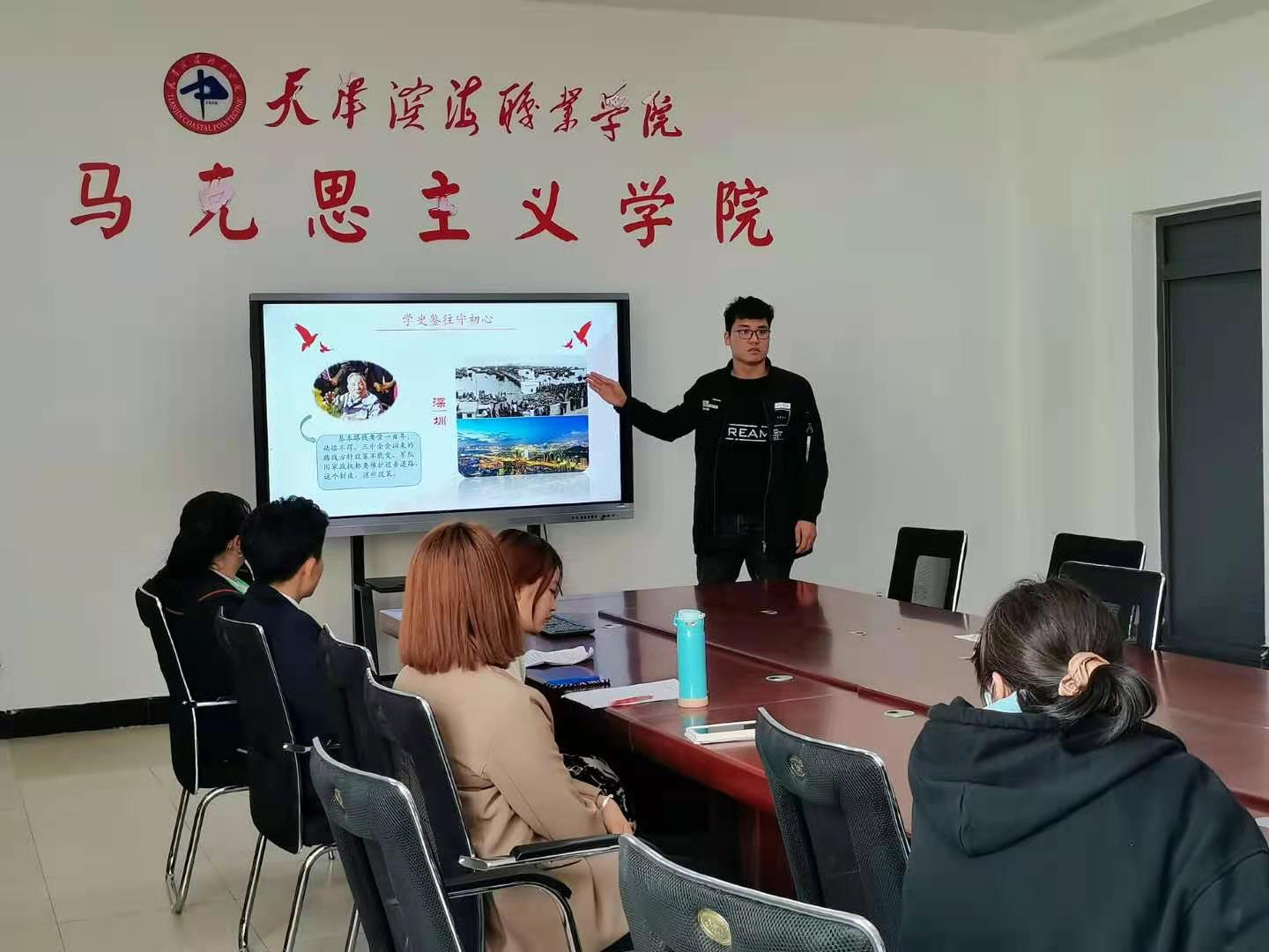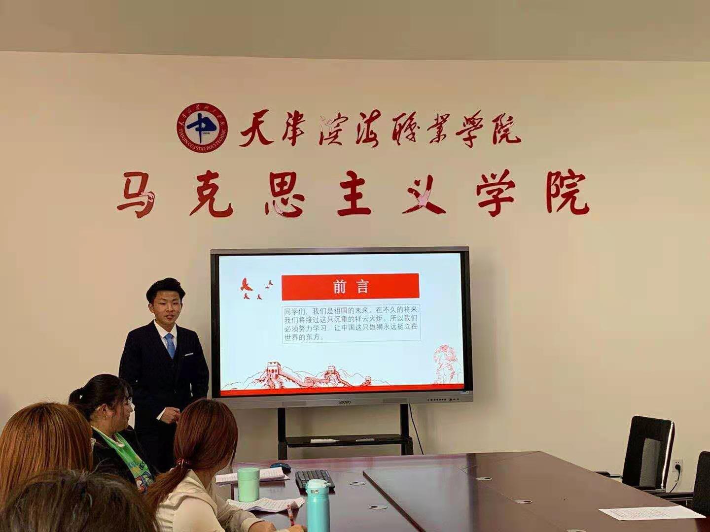为学习贯彻习近平新时代中国特色社会主义思想,落实习近平总书记在学校思政课教师座谈会上的重要讲话精神,紧紧围绕党中央和市委乐竞官网党史学习教育的重要要求,为大力发扬红色传统、传承红色基因,在全院营造学习党史的良好氛围,马克思主义学院于2021年4月8日下午,在马克思主义学院会议室进行了题为“学习百年党史、赓续红色基因、争做时代新人”2021年乐竞官网思想政治理论课公开课大赛决赛。本次比赛由马克思主义学院书记李玉梅同志、教研室主任武奎老师、刘庆老师、李彬老师、18级青年马克思主义研习会会长张梦圆担任评委。