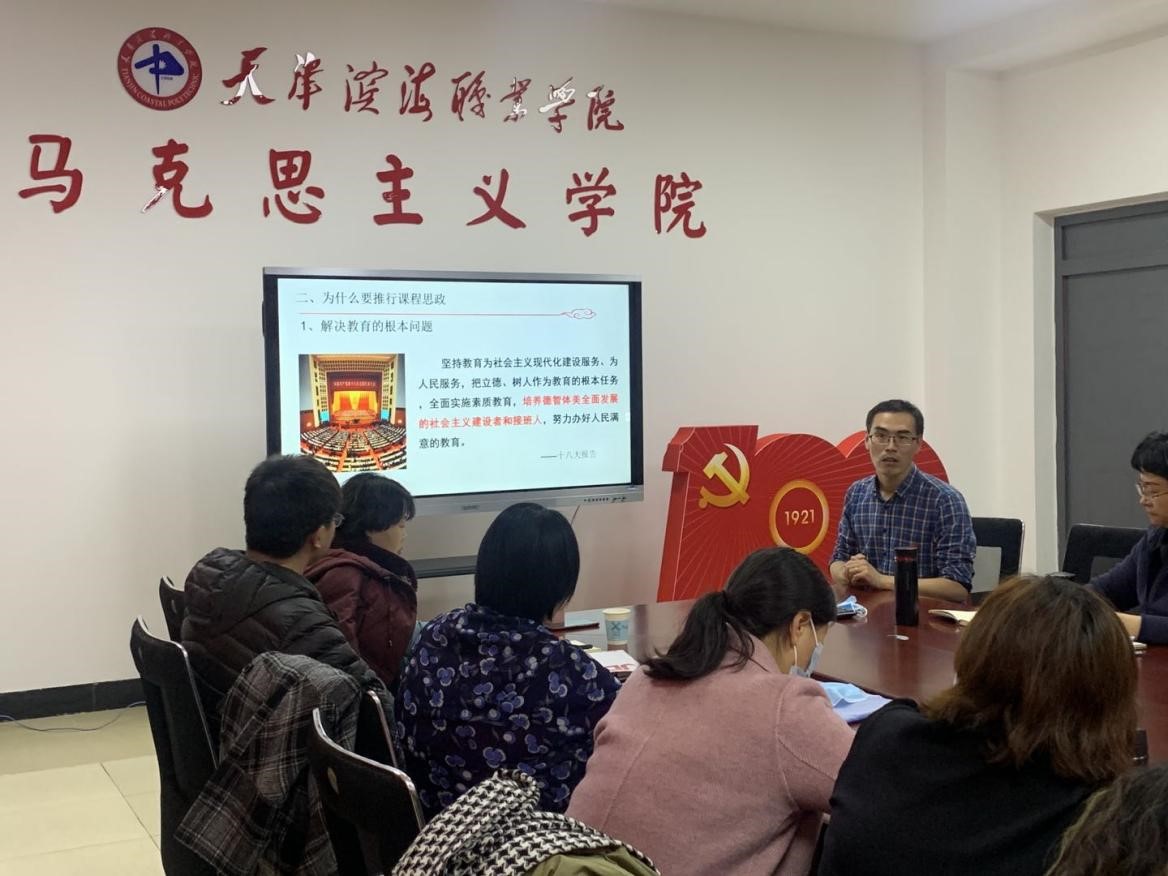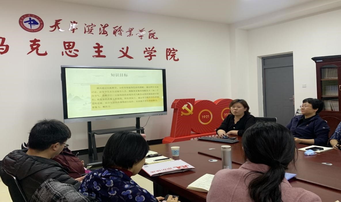 为全面贯彻党的教育方针,落实立德树人根本任务,贯彻落实《高等学校课程思政指导纲要》,提升专业课教师课程思政建设能力,2021年12月15日下午,应用艺术系党支部、机电工程系党支部与马克思主义学院党支部在马克思主义学院会议室联合开展了“党建+课程思政”建设主题党日活动。