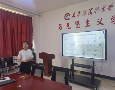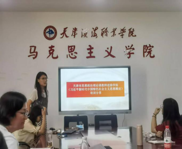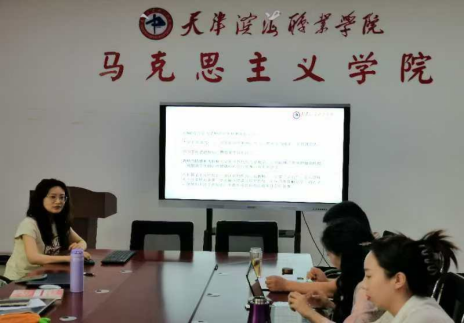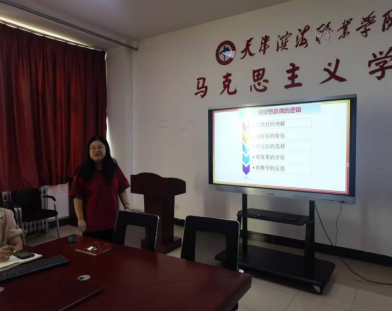 李贺昀老师分享了她参加天津市哲学社会科学科研骨干研修班的培训汇报,介绍了在中国民航大学的现场教学情况,以及在“哲学社会科学研究与教学经验交流”中的前沿问题,让大家受益匪浅,比如互联网时代的文化软实力建设。