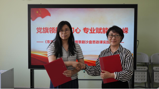 随后,现代服务管理学院党支部书记王晓旭同志为马克思主义学院教师代表颁发聘书,希望通过教师互聘搭建起跨学院协同育人的桥梁,为后续整合教学资源、创新思政实践教学模式奠定坚实基础 。