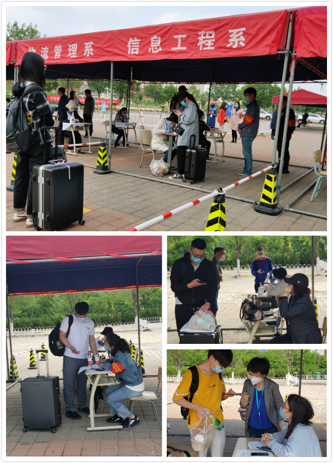 5月15日,学院迎来大一大二年级全体学生复课复学抵津返校。15日早7:30,信息工程系教师全员集合到岗,根据此前多次系部会议协商确定的方案,全体教师组成迎检组、应急处理组、流动帮扶组、宣发及备勤组以及党员先锋队,在校门、信息工程管理与服务实训基地、主教学楼、学生宿舍组成了一条信息工程系返校工作阵线。