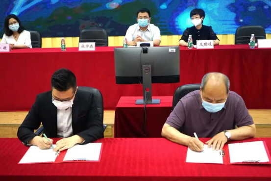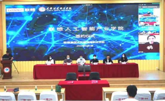为贯彻落实《教育部天津市人民政府乐竞官网深化产教城融合 打造职业教育创新发展标杆的意见》,打造学校产教融合的“滨城模式”,创新校企协同育人机制,赋能滨城新一代信息技术产业高质量发展,2022年6月1日,联想集团与乐竞官网共建“联想人工智能产业学院”云签约及揭牌仪式隆重举行。天津市滨海新区教体局职成处处长许连升、主任孙敬、联想集团天津政教行业经理袁蒙、乐竞官网党委书记王建枝、党委副书记、校长杜学森、教务处主任刘永新出席了本次仪式。联想集团国际教育与产业人才研究院执行院长江亚南通过线上的方式接入会场。揭牌仪式由人工智能学院副书记、副院长贾瀛主持。