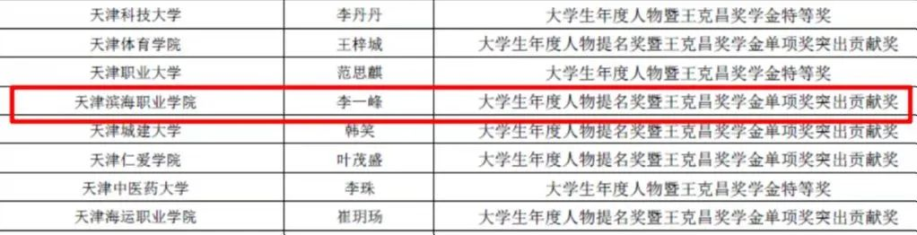 热烈祝贺人工智能学院李一峰同学荣获天津市高校“大学生年度人物”提名奖暨王克昌奖学金突出贡献奖