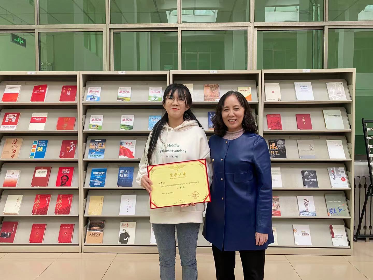 信息素养大赛天津赛区一等奖获同学杨嘉与老师合影