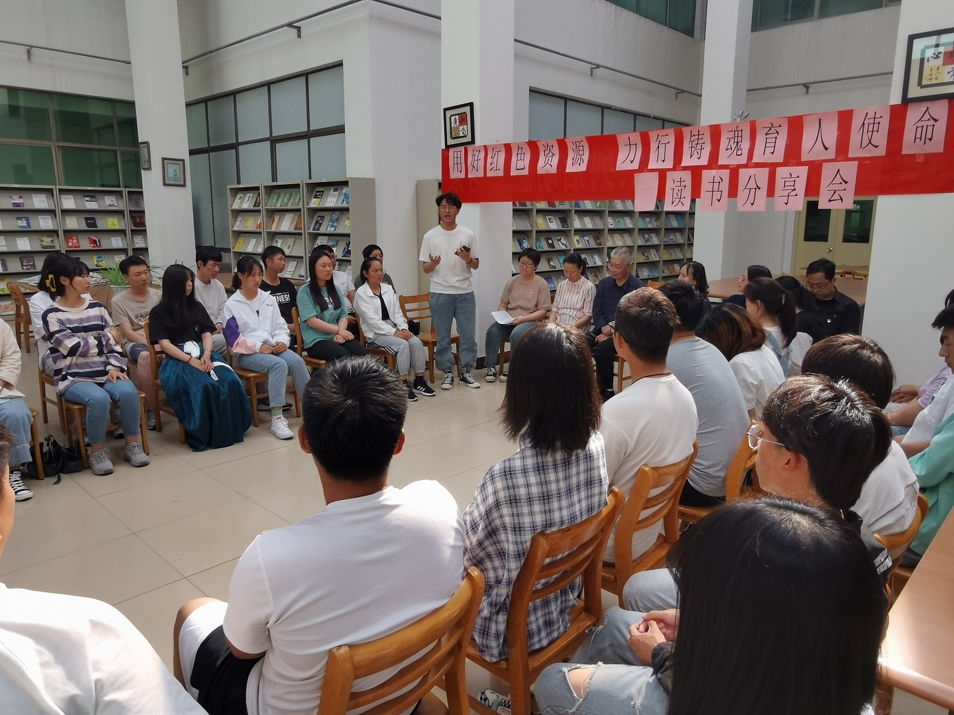 图书馆党员教师和各系参加活动学生在读书分享会上,围绕着校园悦读之星比赛推荐的50本书单畅谈阅读感悟,包括《共产党宣言》等马克思主义经典著作、《习近平谈治国理政》等习近平总书记理论著作、《论中国共产党历史》等党史学习教育必读书目,以及《红旗谱》等红色经典文学作品等。同时围绕党史小知识进行分享交流。在读书分享会上还邀请了上届获得天津市悦读之星三等奖的朱泽睿同学和去年获得图书馆读书月征文演讲比赛一等奖的李赫同学分享他们的阅读体会和参加比赛的宝贵经验。