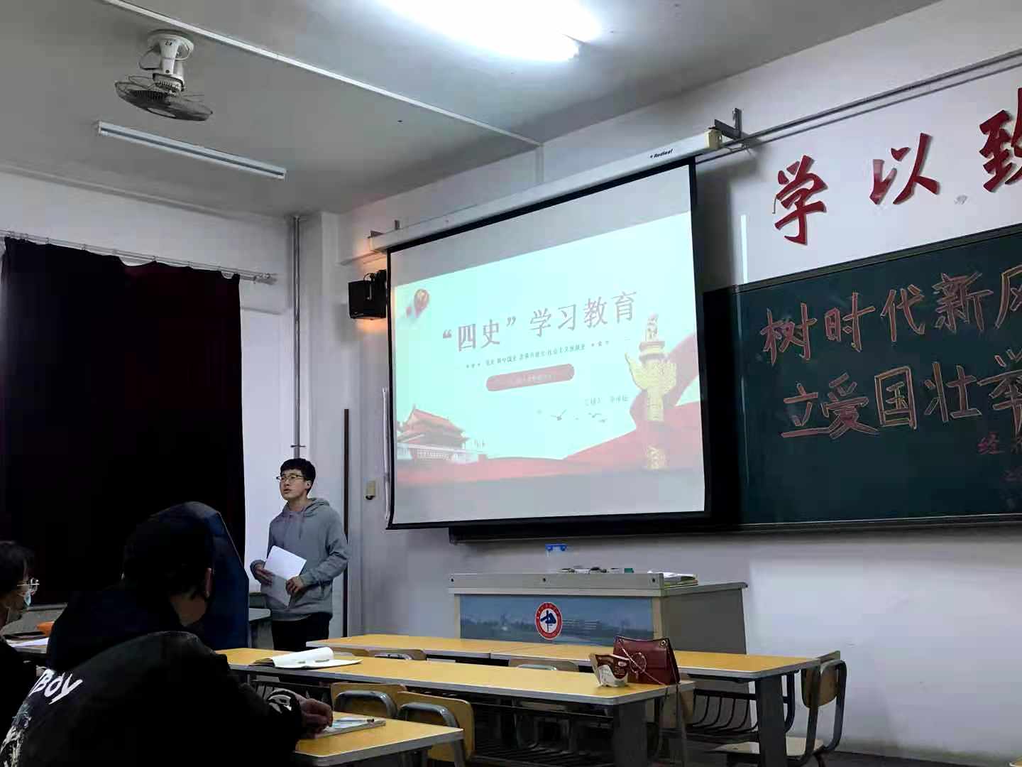 为了把学习贯彻党的创新理论作为思想武装的重中之重,并同学习“四史”结合起来,经管系于2020年11月11日在系楼203教室开展了“树时代新风,立爱国壮举”爱国教育主题班会。19级积极分子及20级各班团支书、组织委员、宣传委员共同参与本次班会,会议由19级积极分子、团总支副书记刘会营主持。