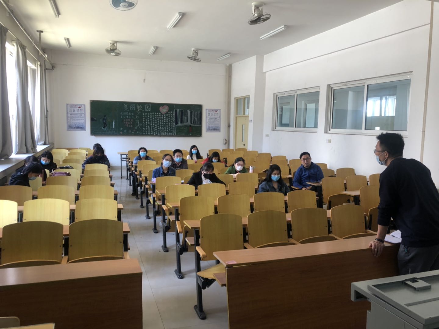 2020年5月12日,我系在107教室召开全体会,学习《 天津市新冠肺炎防控高校复课开学指导手册》(第二版)。