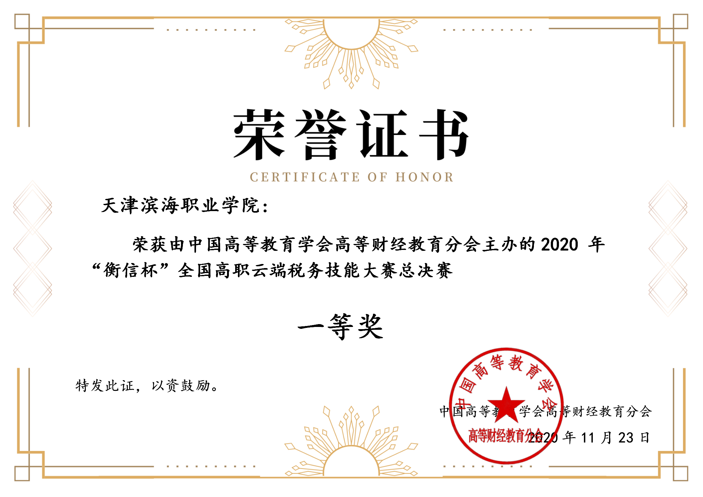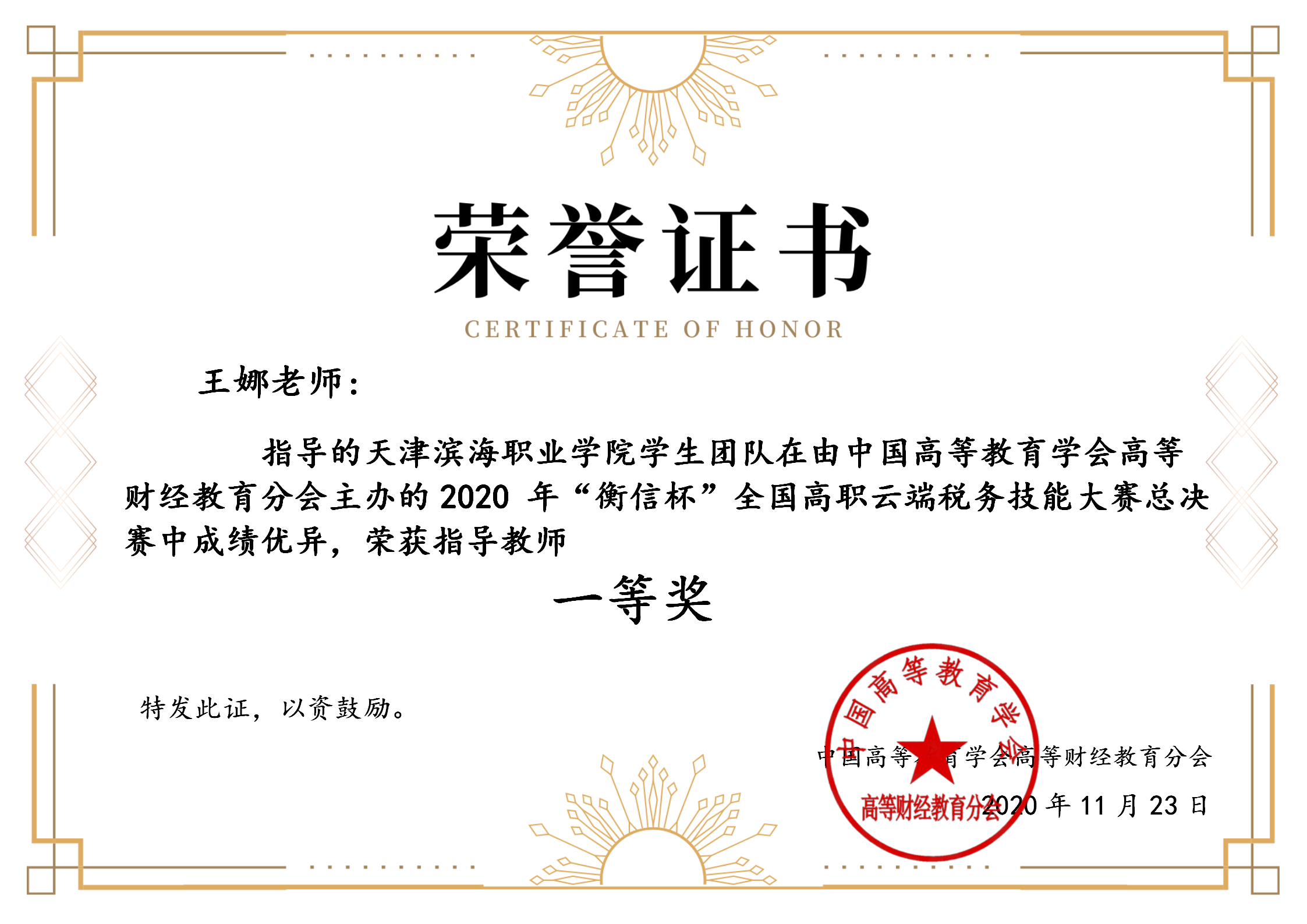 2020年11月21日,2020年“衡信杯”全国高职云端税务技能大赛总决赛在线上举行,我系会计专业张玲、毛智慧、李素素三位同学组成的代表队在王娜老师的指导下获得“衡信杯”全国高职云端税务技能大赛总决赛一等奖,王娜老师荣获指导教师一等奖。