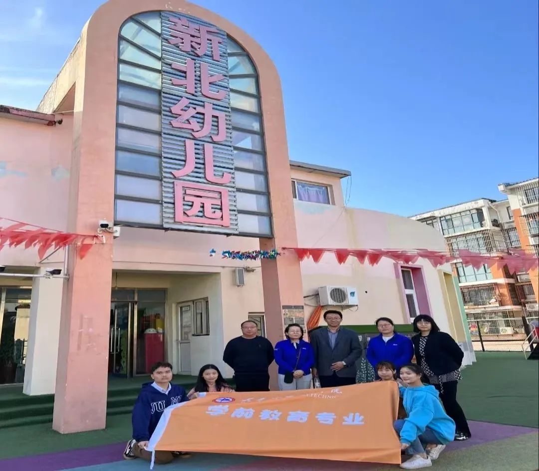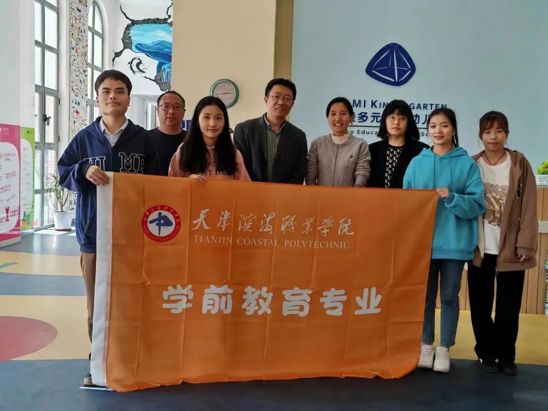 为全面深化产教融合、校企合作,探讨学前教育专业高质量人才培养,探索园校共建实习+就业的路径,推动滨海新区学前教育产教融合共同体建设,2023年4月18日,现代服务管理学院院长徐公仁、学前教育教研室主任马琳,专业带头人李升伟,带领21级学前教育专业学生代表一行7人分别走访了生态城艾毅多元智能幼儿园、艾毅幼儿园和新北幼儿园。