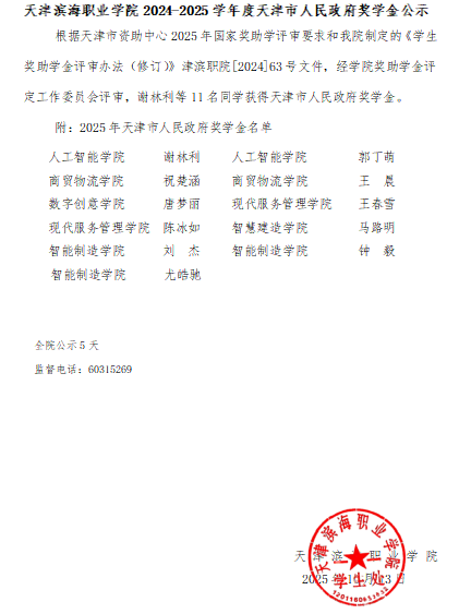 乐竞官网2024-2025学年度天津市人民政府奖学金公示