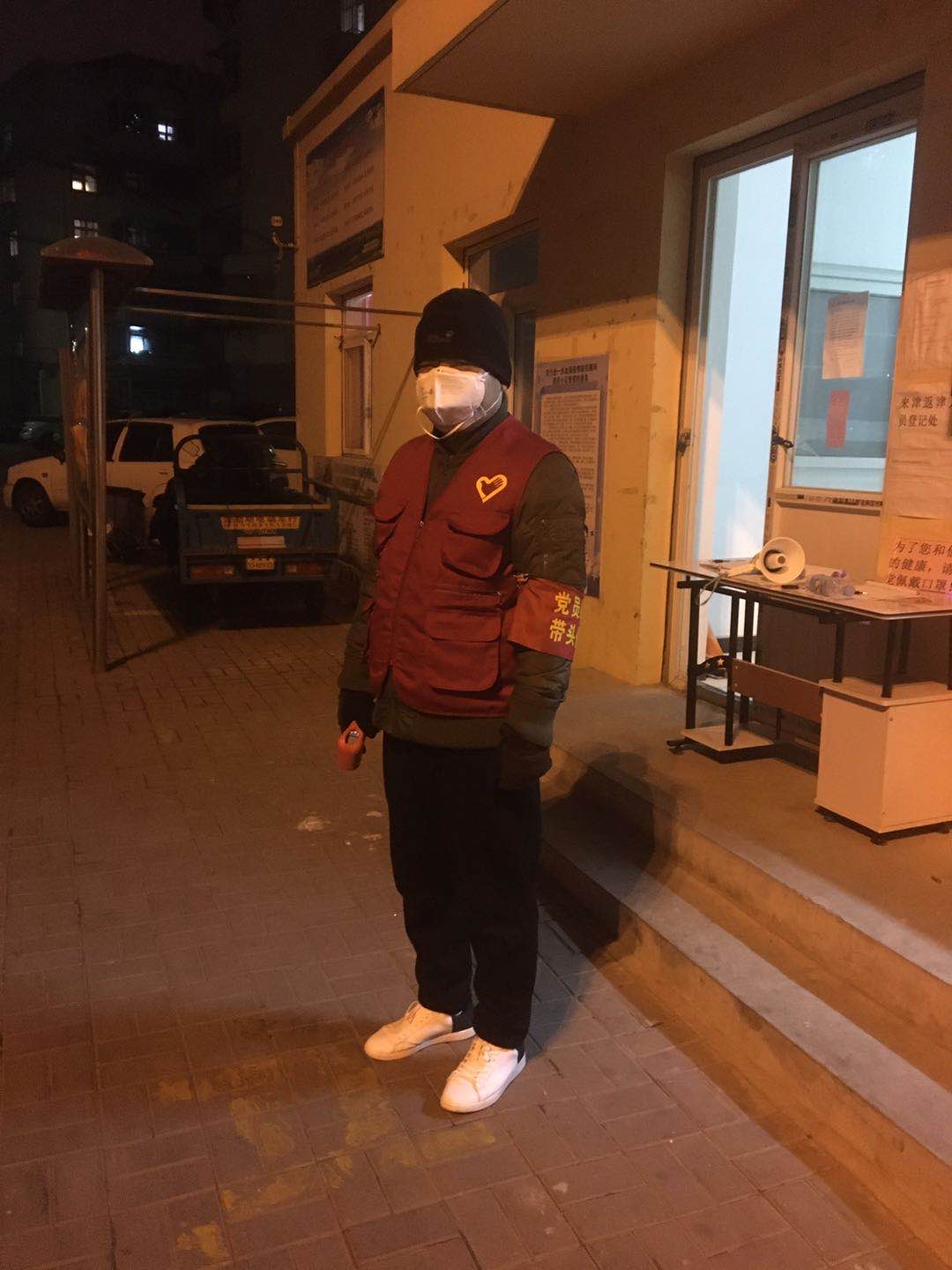 冯子阳,国际商务系党支部副书记,他服务的小区是新北街首创社区迎年里,近期,由于“六小企业复工”,外来人口多,主要工作岗位是守门岗、测体温,主动要求承担艰巨任务。曾多次值夜班,夜里气温较低,有几次脚都冻木了,但上过警校的他依然冒着严寒,以军人的身姿笔直地站在小区的入口处,守卫着小区的安全,充分发挥了党员干部的先锋模范作用。
