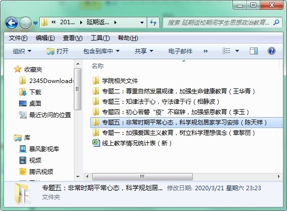 为了配合学院做好学生延期返校期间的思想政治教育工作,陈天祥经常要通过微信、QQ及腾讯会议等多种形式,和他的辅导员团队沟通,了解学生动态,解决学生问题。为提升主题教育的高度和质量,每次主题教育的素材都是由系部统一规划并制作,再分步实施。他们科学分工,统筹协调,先后制作并实施了五次大型专题教育,对学生在疫情期间的教育和引导,收到了良好的效果。