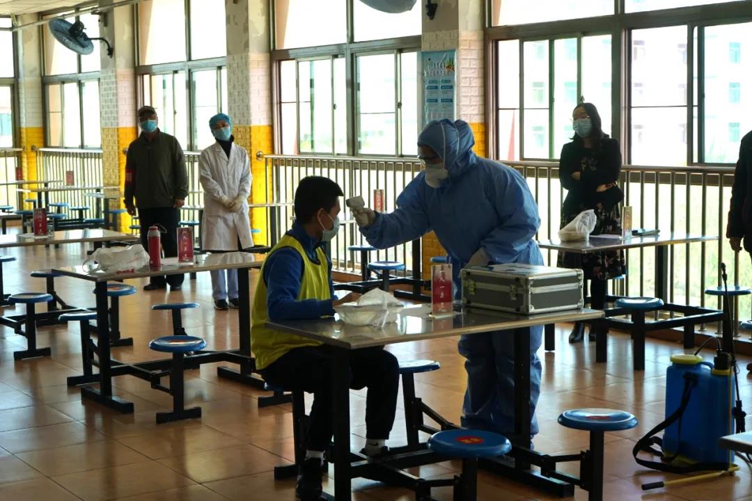 以“就餐期间出现一名学生发烧的为情景”,按照“演练即实战”的要求,模拟师生返校后防控疫情的真实场景。参加演练人员密切配合,准确、迅速、规范地按照演练脚本做好突发事件应急响应的防护与操作。演练结束后,学院领导对演练环节中存在的不足提出了相应的整改建议和意见。