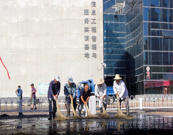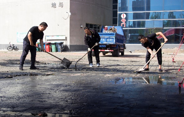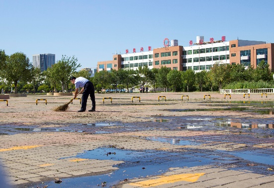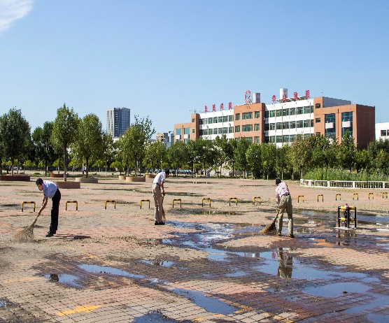 后勤管理党支部组织人员快速排除学院东门积水 来源: 发布时间:2020-09-22 10:34:33 浏览次数: 次 【字体:小 大】 9月14日、15日连续两场大雨,导致进出学院东门的路上积水较深,行人和车辆只能涉水而过。为了尽快使道路恢复畅通,后勤管理党支部组织人员于16日凌晨开始清理积水,清洁道路,一直到晚上10点才完成。为学院师生出行和迎接创文检查验收奠定了良好的基础。 参加此次活动的人员有,后勤管理处、资产管理处、安全保卫处的相关人员,绿化、物业公司也派出多人并提供设备参与排水。 分享到: 【打印正文】