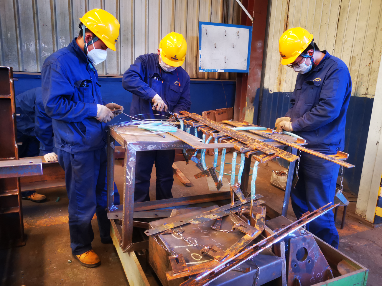 安全教育结束,学生穿戴、佩戴暂新的安全帽、防尘口罩、手套、工服、老保鞋进车间,12名学生进装配岗,12名学生进焊接岗,并实行轮岗制度,一周一轮换,一周一考核。装配岗安排5名师傅指导学生,焊接岗安全4名师傅指导学生,每位师傅带2-4名学生不等。装配岗主要跟师傅学习图纸识读、划线、装配、测量、调试等内容;焊接岗主要跟师傅学习焊接设备使用、除锈、二氧化碳气体保护焊接操作技术、焊缝外观质量检验等。在整个过程中,学生们做到了“四不伤害”,掌握了识读工程图纸的方法,掌握了简单划线、装配、测量、焊接技术,磨炼了不怕苦、不怕脏、不怕累、努力劳动的坚强意志,提高了团队合作能力,提高了学习积极性和主动性,培养了职业素养和专业情感。