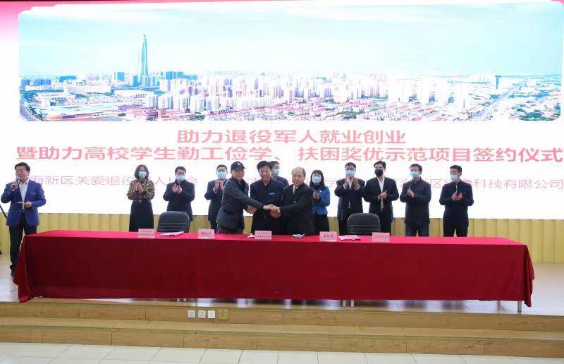 滨海新区“助力退役军人就业创业暨助力高校学生勤工俭学、扶困奖优”示范项目签约仪式在学院隆重举行
