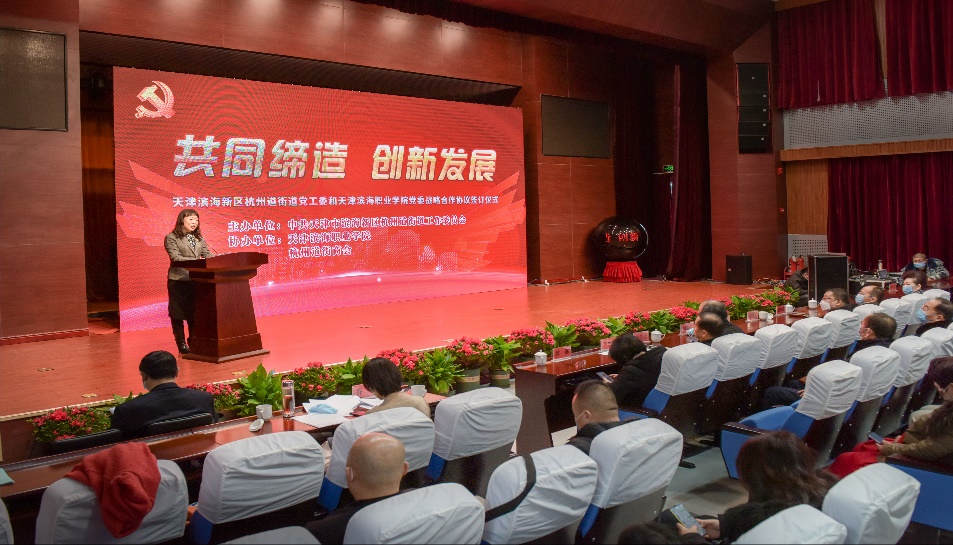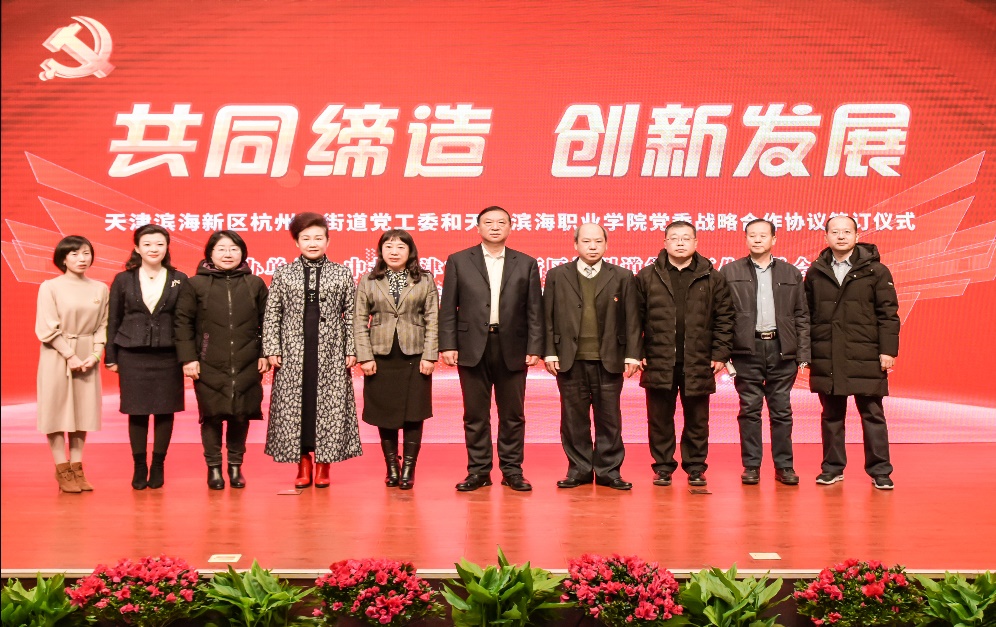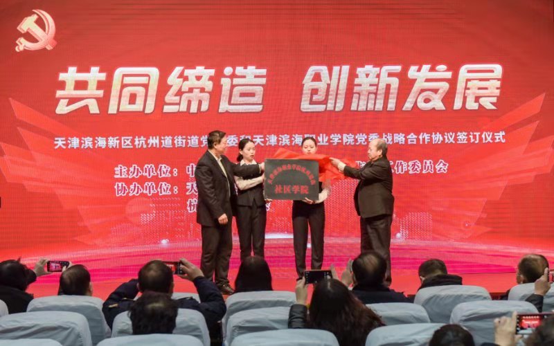 为密切政府、学校、企业、街区、社区合作关系,形成合作办学、合作育人、合作就业、合作发展的育人机制,共同服务于新区产业发展、高素质技术技能人才培养、全民终身学习,构建和谐社会,繁荣街区事业,滨海职业学院、杭州道街办事处、杭州道街商会联手合作,形成共识、凝聚力量、发挥聚合效应,共谋、共创事业发展。