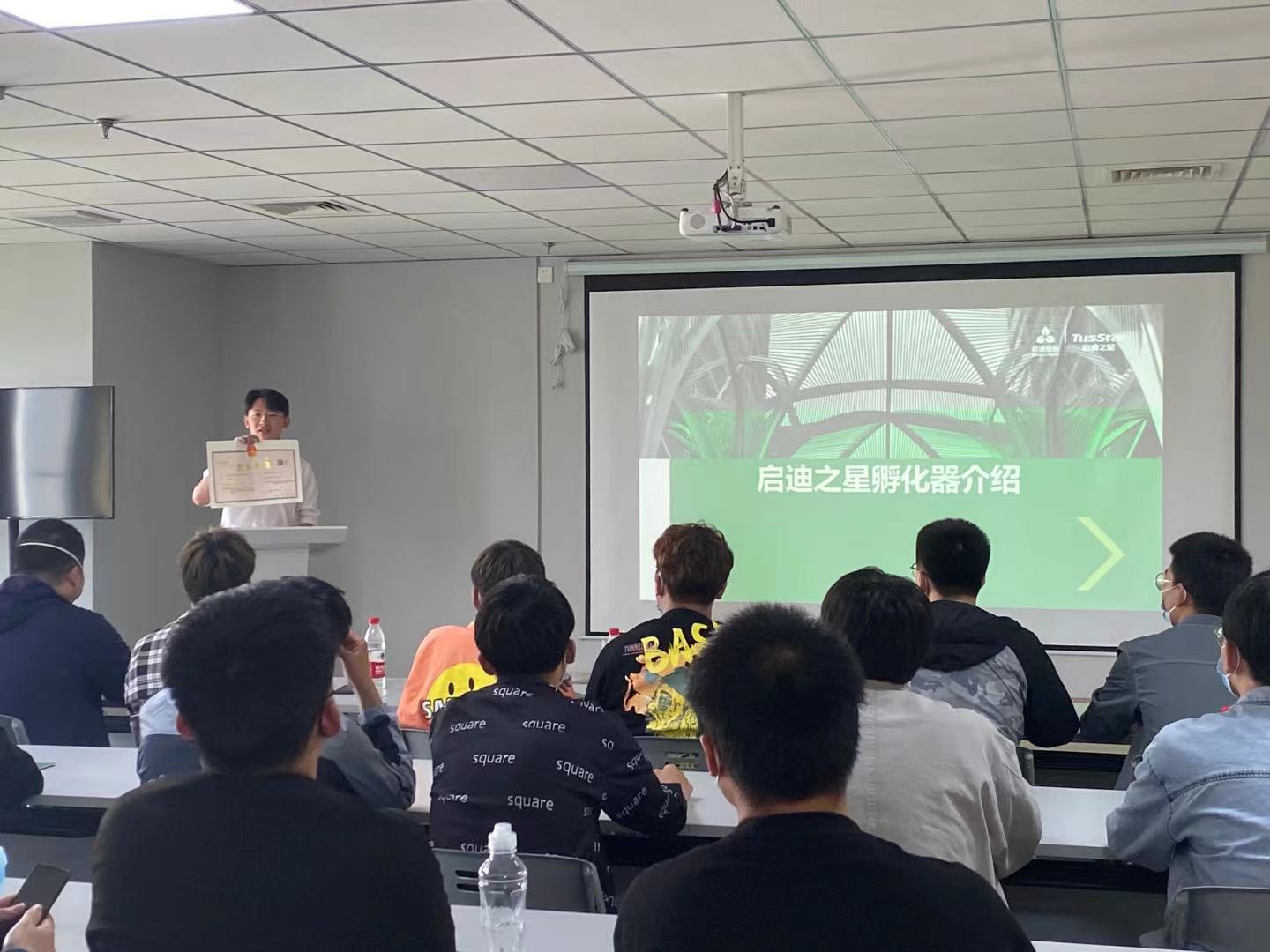 启迪之星(天津·生态城)结合学生们的创业需求,介绍了创业孵化基地的发展历程、运营情况、创新创业文化等相关内容。工作人员带领学院师生参观了启迪之星(天津·生态城)基地及入驻企业,并就创业基地的规模定位、发展方向、运营模式、入驻方法等基本情况进行了讲解,帮助同学们近距离感受到了创新创业的文化氛围。