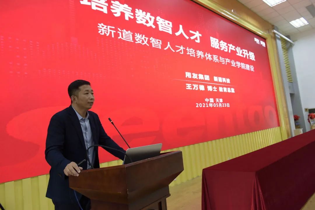 新道科技股份有限公司产业学院建设总监王万德先生进行《职业教育现代产业学院建设探索与实践》主题分享