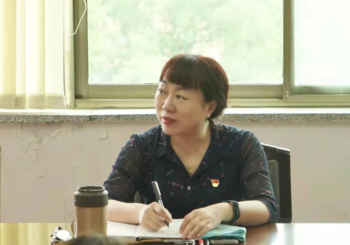 刘雁红书记认真听取融媒体中心学生代表发言