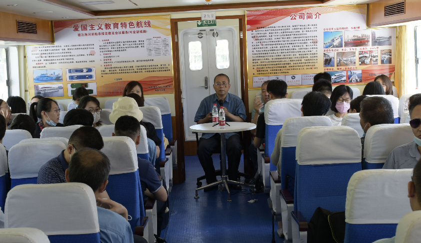 本次主题党日活动共包含两部分内容,分别为海河沿线爱国主义教育以及党史课程学习。首先,乘坐海河游船,听取专业讲解,了解海河下游两岸的历史文化积淀,以原海河外滩公园对岸为起点,途经天津港第三作业区码头、塘沽南站、塘沽协定签订遗址、天津碱厂遗址、后关码头遗址、北洋水师大沽船坞等爱国主义教育基地和历史遗址。在长约15公里的河道中,共有20余处人文景观和历史文化遗迹。微波潋滟的海河水仿佛是一面镜子,随着讲解员的话语,这条航线将中国近现代抗击外来侵略者、兴办民族工业的历史投射得历历在目。