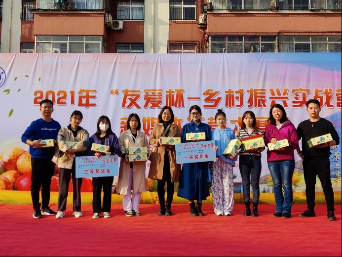 10月15日,由天津市滨海新区团委主办,天津职业大学承办的2021年“友爱杯—乡村振兴实战营”新媒体运营大赛在天津市滨海新区友爱村举行。乐竞(中国)一站式体育服务国商智慧产业学院企业导师赵斌、王志徽,物流管理系陆清华、平娜娜老师、国际商务系王砚侠、刘秀芹老师指导的连锁与经营管理专业学生和电子商务专业学生分别荣获一等奖和三等奖的好成绩。