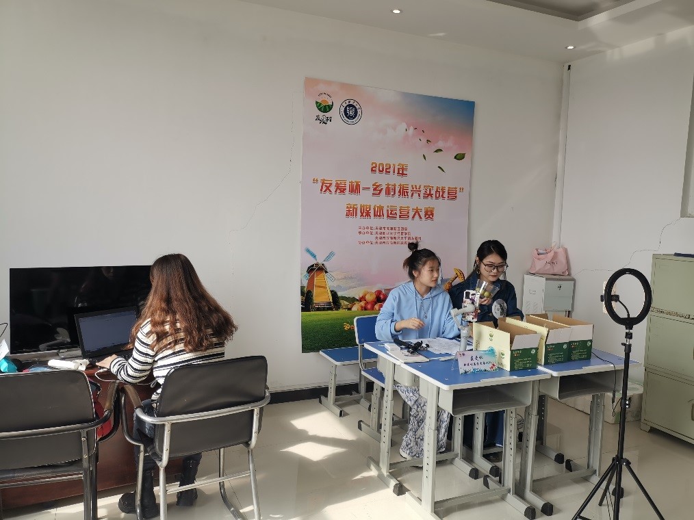 竞赛分为两个模块,历时5天。10月11日-10月15日为短视频运营阶段,参赛团队从直播账号注册与运营、短视频创意策划、短视频拍摄与剪辑、短视频推广、数据分析等内容,实现新媒体短视频平台的完整运营。期间在企业导师和校内导师的指导下,参赛团队通过多种方式组织在校学生关注太平镇友爱村爱心助农活动,并向广大在校生征集了丰富多彩的直播视频素材,取得了良好的运营成绩。10月15日直播当天,参赛团队对太平镇友爱村特产——冬枣进行长达4个小时的直播实战,最终两支参赛队分别取得了一等奖和三等奖的佳绩。
