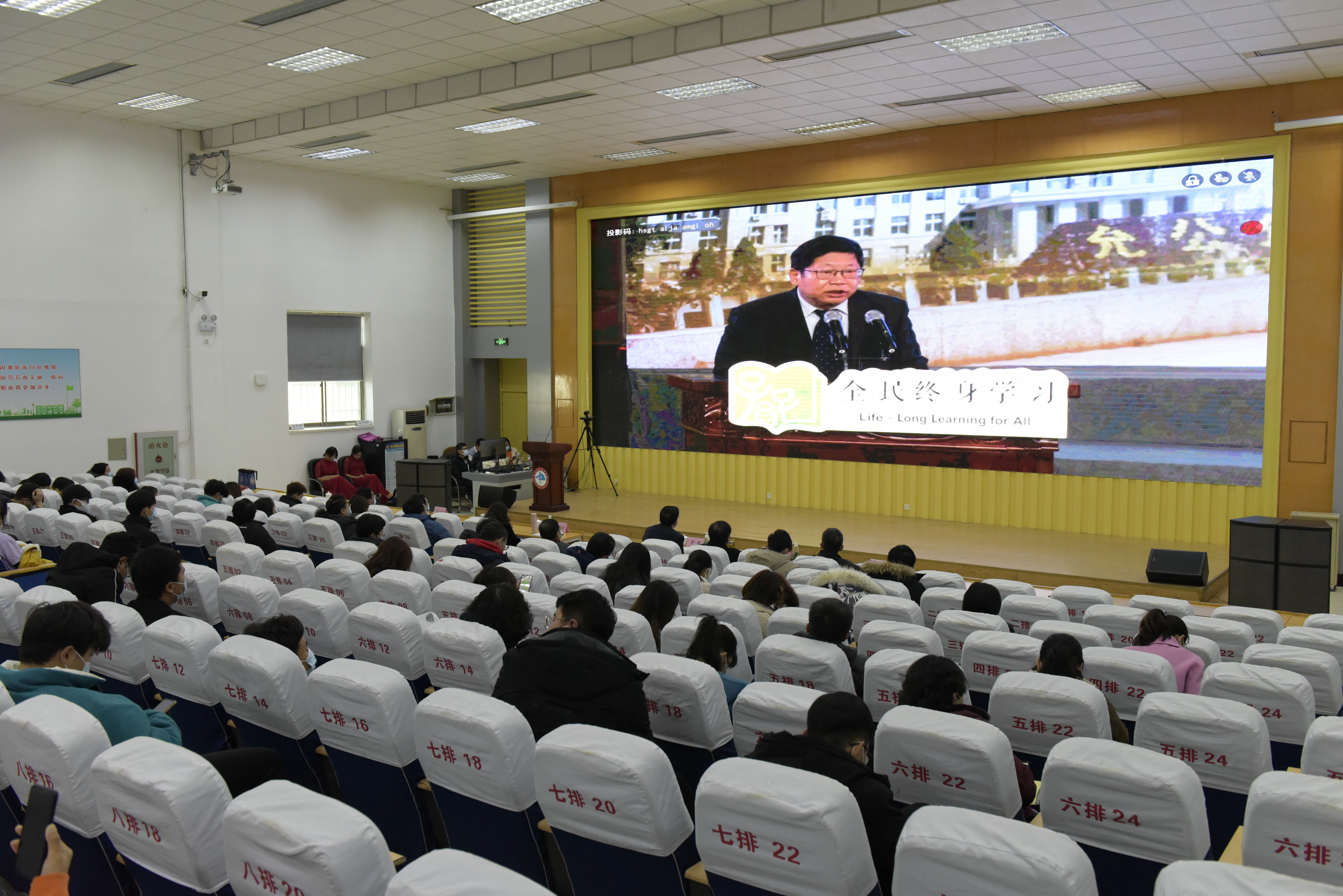 学院党委书记刘雁红同志代表学院致辞。刘书记介绍了学院以“庆建党百年华诞 谱终身学习新篇”为主题,精心组织的活动周线上线下终身学习的系列活动及取得的成效。她强调,学院将以此次活动为契机,深入贯彻落实党的十九届六中全会精神,落实立德树人根本任务,为党育人,为国育才,大力宣传终身教育思想,树立终身教育、终身学习观念,持续开展全民终身学习,使全民学习成为一种自觉、一种习惯,落实好新区第四次党代会精神,党建引领共同缔造,为全面建设生态、智慧、港产城融合的宜居宜业美丽“滨城”贡献力量,以优异的成绩迎接党的二十大召开!