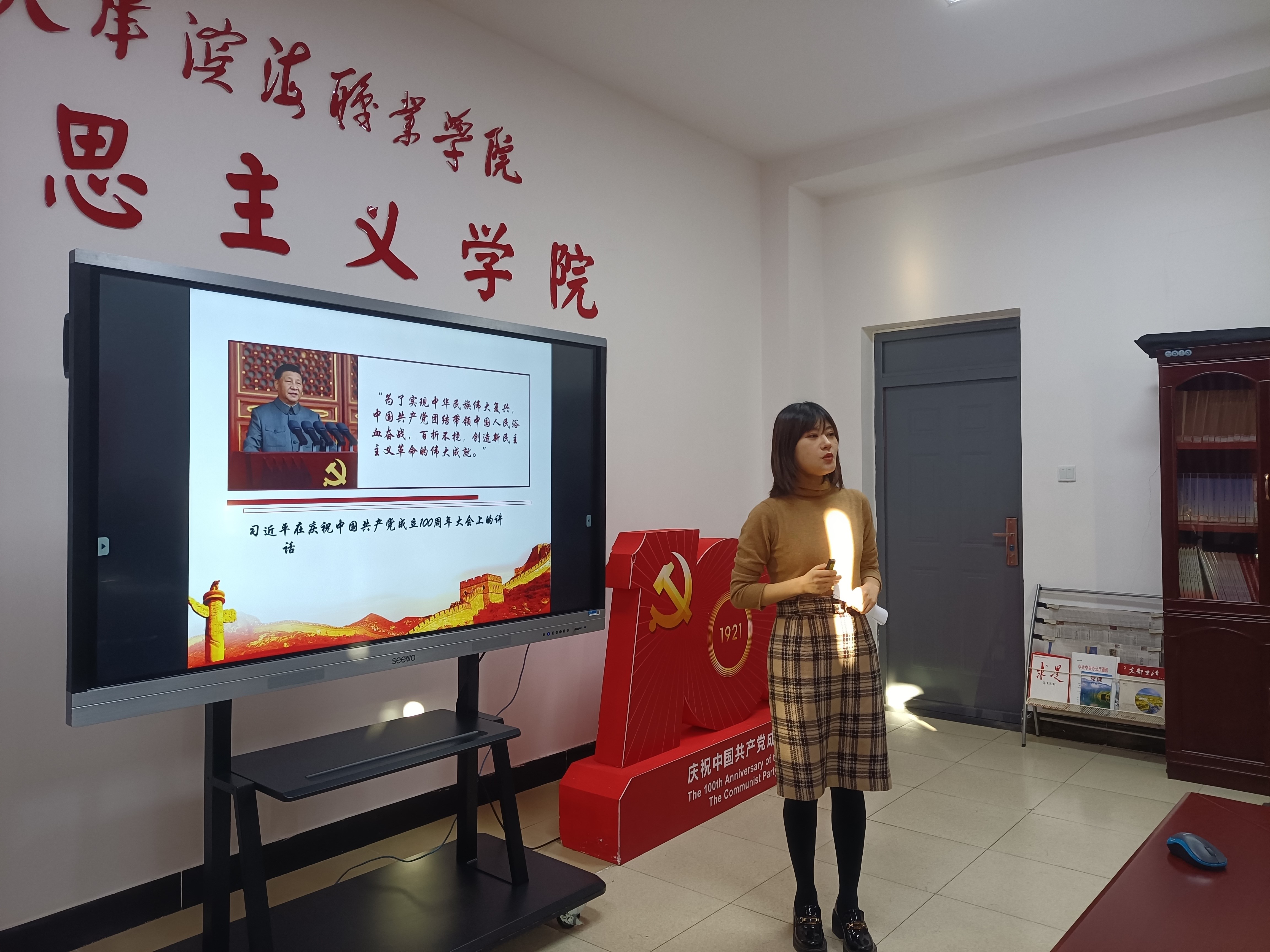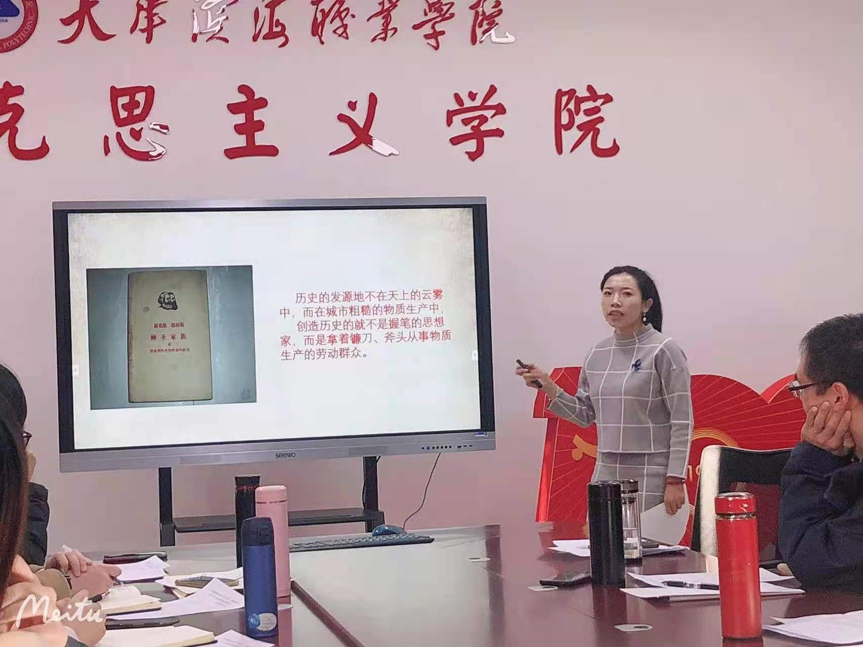 为深入学习贯彻习近平总书记“七一”重要讲话精神,马克思主义学院于2021年12月13日上午组织了习近平总书记“七一”重要讲话精神融入思政课教学展示比赛活动。三个教研室推荐的6位思政课教师参加了教学展示,全体思政课教师现场评审观摩。