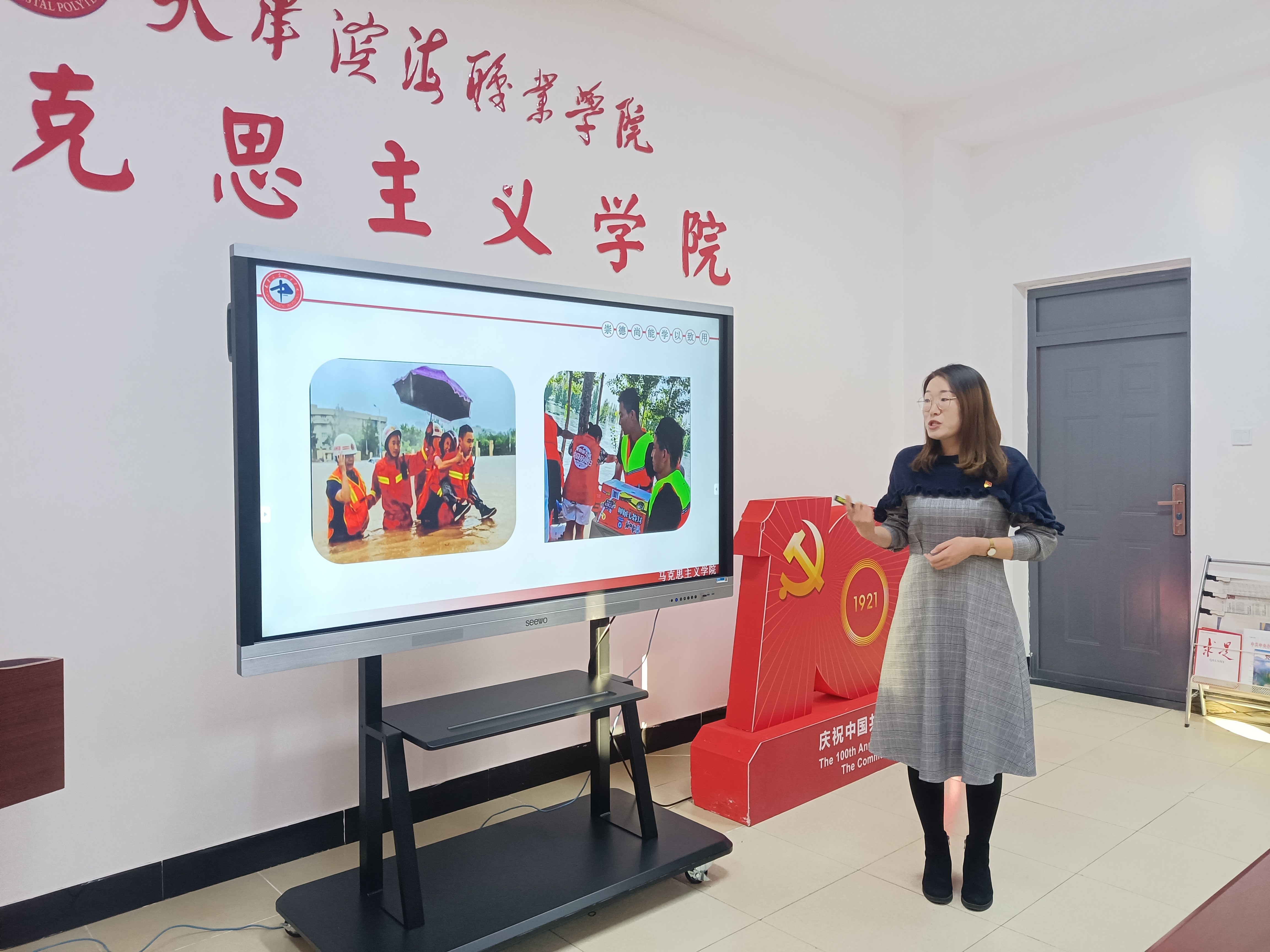 第二位是施苓艳老师围绕《思想道德与法治》中“传承百年薪火,奋斗筑梦青春——新时代呼唤担当民族复兴大任的时代新人(担大任篇)”,主要从增强担当认知,长做中国人的志气、厚植爱国情怀、提升担当能力等方面进行讲解。