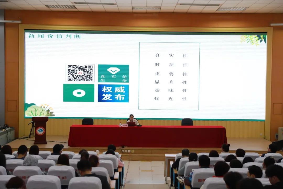 为进一步贯彻落实习近平新时代中国特色社会主义思想,全面加强新时代宣传思想工作,适应新形势下学校宣传思想工作需求,弘扬主旋律,激发正能量,推进学校宣传工作的科学化和规范化,2023年4月6日,我校在报告厅举办宣传工作专题培训。天津市优秀共产党员、滨海新区融媒体中心经济采访部副主任陈西艳应邀作题为《新媒体时代的新闻业务实务》专题培训。我校党委书记王建枝、全体中层干部、各部门新闻信息员、学校记者团学生、二级学院新媒体学生170余人参加了培训。培训由党委宣传部罗颖主任主持。