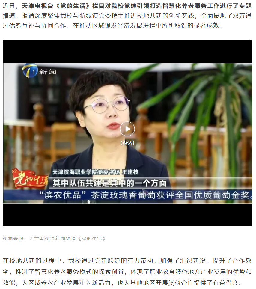 天津电视台新闻频道报道我校与新城镇党建引领智慧助老工作