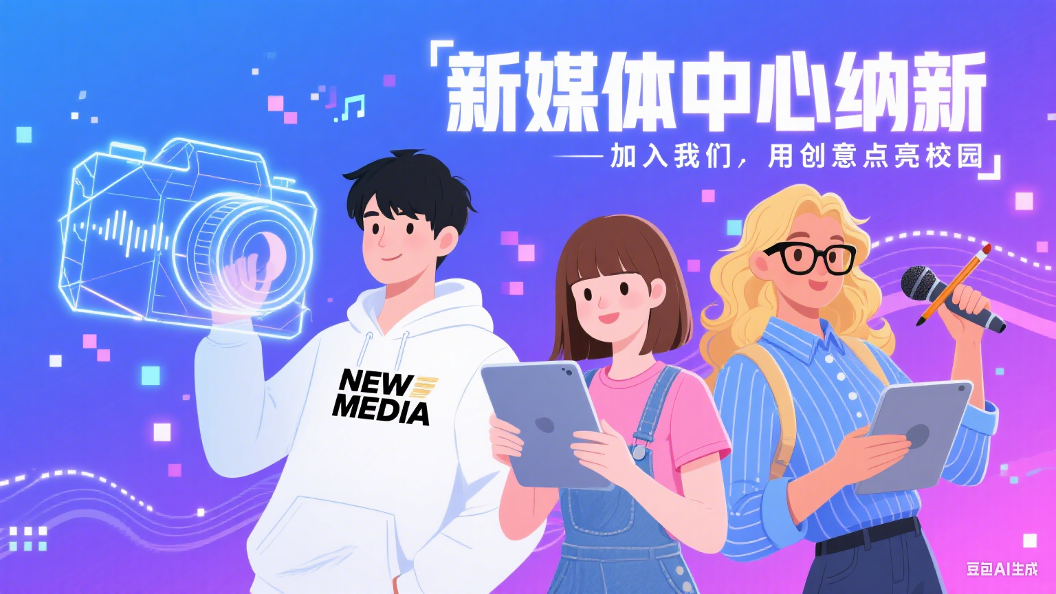 在这个新媒体时代,你是否也想透过自己的镜头看世界,用自己的笔尖抒发见解,亲手构建精美的设计呢?你拥有哪些可以展示的技能,又想获取怎样的经验呢......学生会媒体中心等待每一个会发光的你!