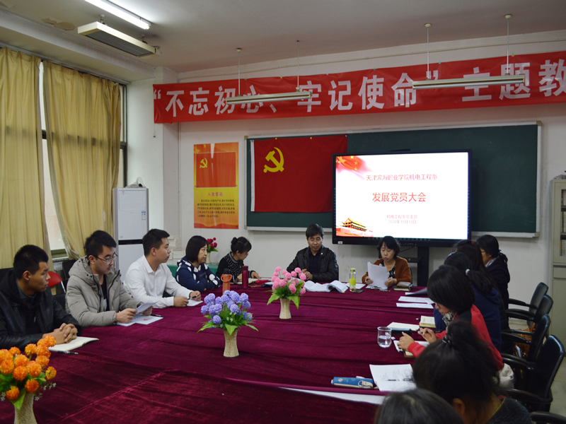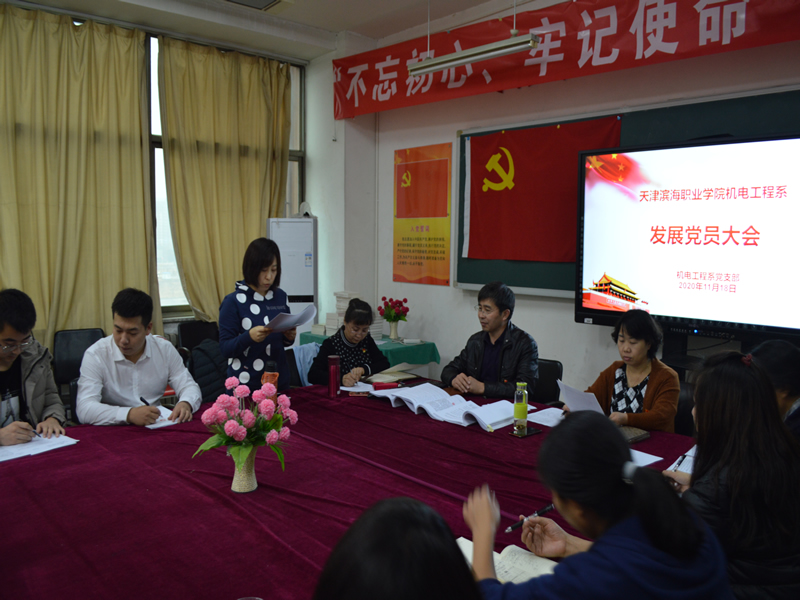 为进一步加强基层党组织建设,落实党支部发展党员工作计划,2020年11月18日下午,机电系党支部在教学楼406党员活动室召开了接收预备党员大会,支部11名党员及3名发展对象及入党积极分子参加了本次会议。会议由支部书记刘秋艳同志主持。本次会议是严格按照组织程序,在经过组织考察、政治审查、党课培训、广泛听取党内外群众意见的基础上,经上级党委批准,召开的乐竞官网讨论接收张琳等3位同志为中共预备党员的支部大会。