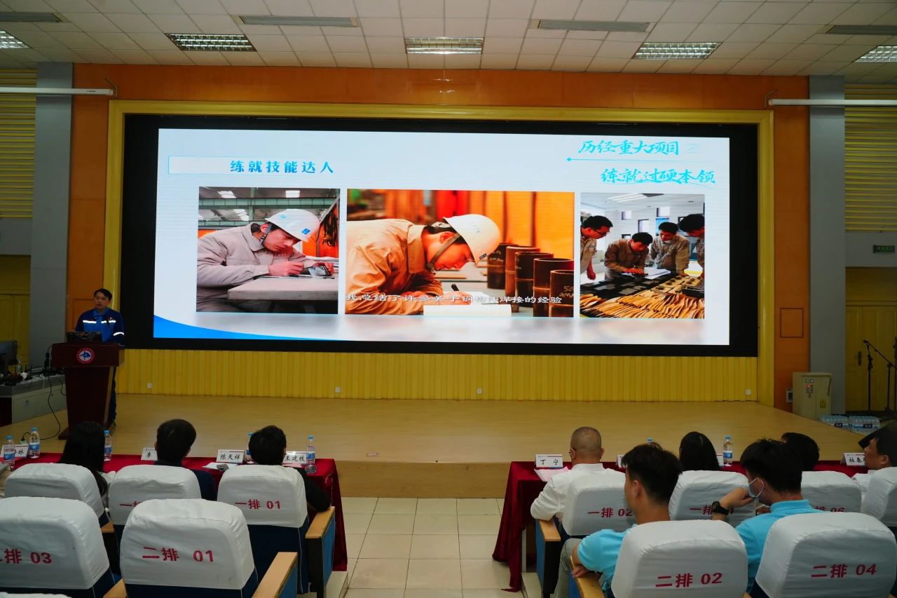 李朋朋以《向着“大国工匠”’奋进》为题,从练就技能达人、变身金牌教练、奔向大国工匠等三个方面,用自己的亲身经历,阐释何为“工匠精神”。