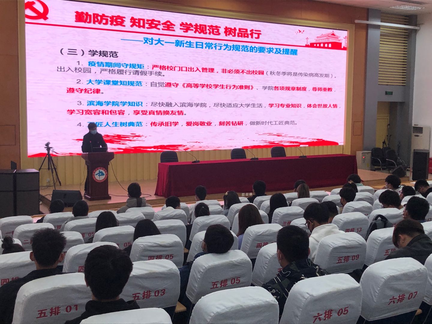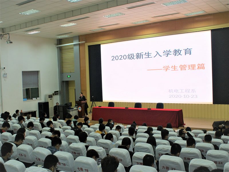 为帮助学生扣好大学生活“第一粒扣子”,让学生尽快适应大学生活,尽快融入到机电系这个大集体中来,2020年10月23日晚上,在确保疫情防控安全的基础上,机电工程系在第一报告厅组织了2020级全体新生入学教育,系班子成员、团总支书记、教学秘书、辅导员老师参加,会议由副主任沈艳辉主持。