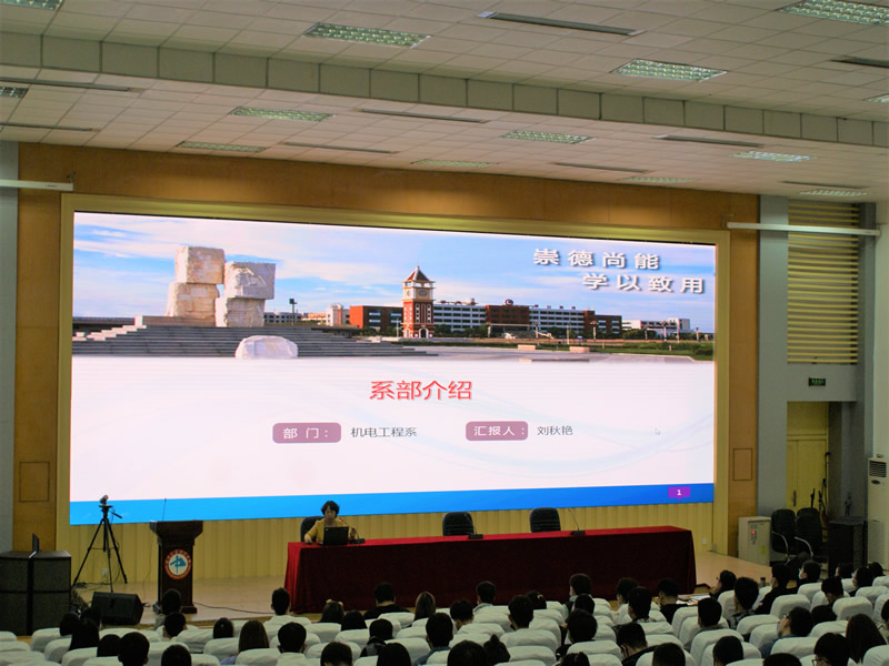 首先机电工程系党支部书记、系主任刘秋艳对机电系整体情况,包括各专业情况、师资队伍,实训基地、学生实习就业、校企合作、专业社团及技能竞赛等做了介绍,并对新生们提出了三点希望,一是要学会做人,学会与他人和谐相处,懂得感恩,孝敬父母和长辈,尊重师长;二是要树立远大理想、热爱伟大祖国、担当时代责任、勇于砥砺奋斗、练就过硬本领、锤炼品德修为,不断提升自己;三是学会学习,要确定学习目标,做乐学、上进的好学生。按照“崇德善能 学以致用”的校训在大学三年里实现综合素质的不断提高,真正成为德智体美劳全面发展的高素质技术技能型人才,为国家为社会做出自己的贡献。