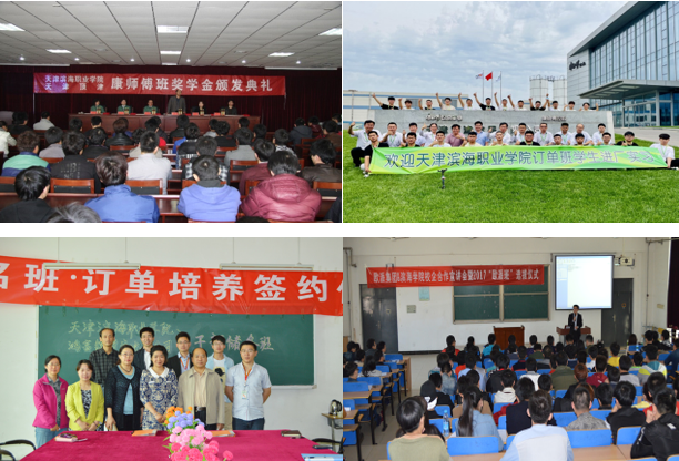 适应国家制造强国战略,与多家企业合作,先后建立了“新港船厂班”、“康师傅冠名班”、“鸿富锦精密电子储备干部班”、“欧派班”、“一汽丰田”等多个订单班,提升学生就业质量。
