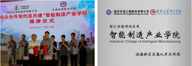 深化校企合作,对接天津1+3+4”现代工业产业体系对机电类技能人才的需求,与中石化第四建设有限公司、天津重钢机械装备股份有限公司等多家企业共建 “政、产、企、校”四方协同的“1+1+N”模式产业学院,校企合作开发课程、共建结构化教师团队、开展分工协作的模块化教学课堂革命,打造学生就业的绿色通道。