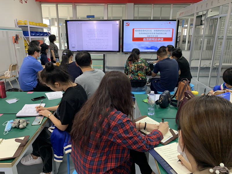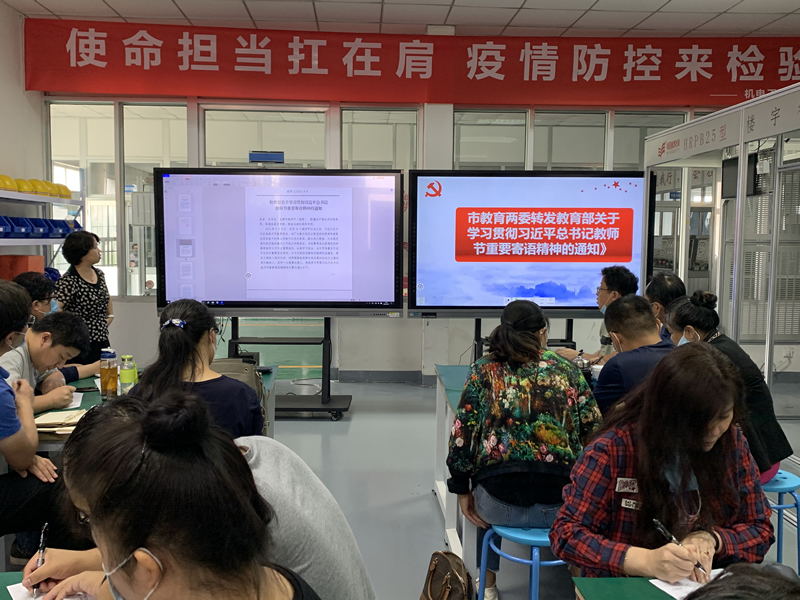 2020 年9月24日,机电系组织全体教师在机加工基地学习了《习近平总书记乐竞官网党史、新中国史、爱国主义的重要论述》《市教育两委转发教育部乐竞官网学习贯彻习近平总书记教师节重要寄语精神的通知》《连茂君同志讲话》等文件。
