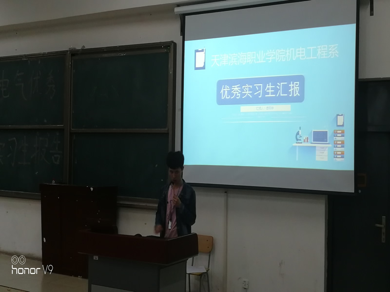 几位同学来自几家不同的企业-西安南华科技有限公司、天津鸿富锦、天津首钢电气、天津伍嘉联创、北京芯愿景,同时也从事不同的岗位-电力维修、项目开发、设备检测、调试与维修、软件产品开发。在自己的工作岗位上,几位同学都是认真负责,兢兢业业,发扬了“敬业、创新、务实、奉献的滨海精神,非常出色的完成了顶岗实习任务,并经过教师推荐、个人申请、单位同意、学院审批,成为了我们2018级实习生的优秀代表。石达、刘成龙两位同学参加了升本考试,经过多半年的拼搏,无论是专业课还是基础课,都取得了不错的成绩,在会上,两位同学也针对专升本的报考、复习等内容,认真仔细的解答同学们的各种问题。