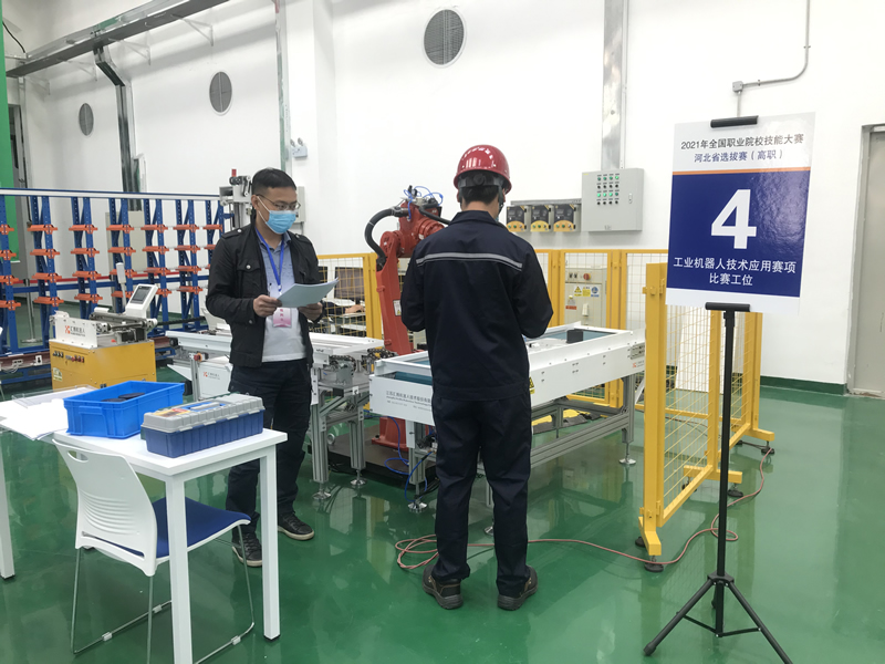 2021 年5月5日—8日,2021年河北省职业院校“工业机器人技术应用赛项”(高职)大赛暨全国选拔赛在唐山工业职业技术学院举行。来自河北省9所高职院校的34名选手参加了比赛。我系工业机器人技术专业教研室主任于世楠老师应邀担任了大赛裁判,并圆满完成执裁任务。