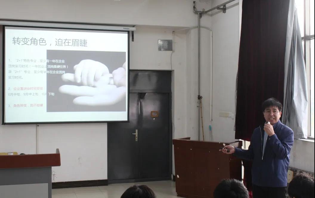 针对顶岗实习具体工作,陈书记要求与会学生及时调整和转变心态,为自己即将进行的企业顶岗实践工作奠定基础。顶岗实习期间学生要严格遵守各项校规校纪和实习单位的各项规章制度,按时完成顶岗实习任务。