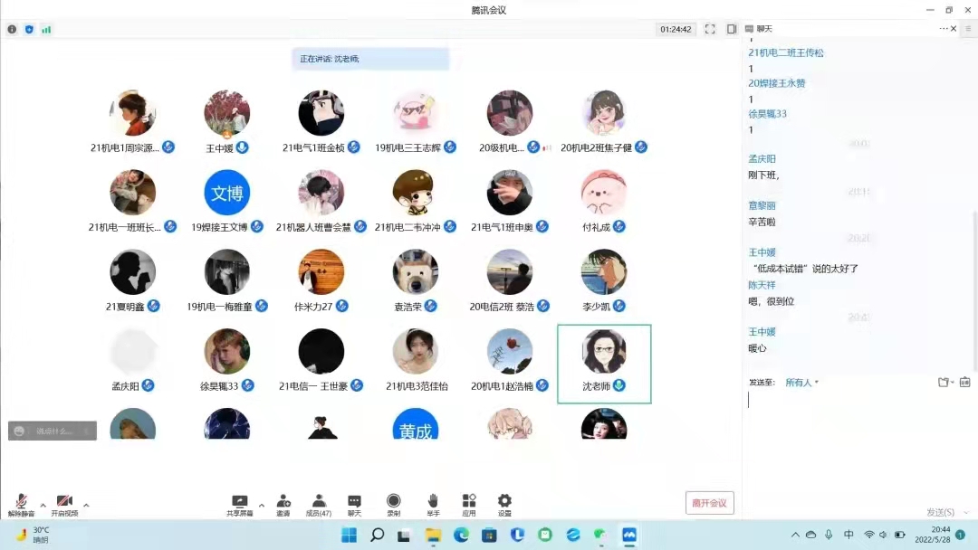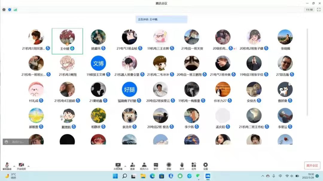 5月27日,智能制造产业学院2022届“筑梦青春 扬帆起航”毕业生就业经验交流会在腾讯云端准时召开。智能制造产业学院陈天祥副主任(主持工作)、沈艳辉副主任、王中媛副书记、毕业班辅导员、2019级各班学生代表以及20、21级部分学生代表共计50余人参加了此次交流会,会议由王中媛副书记主持。
