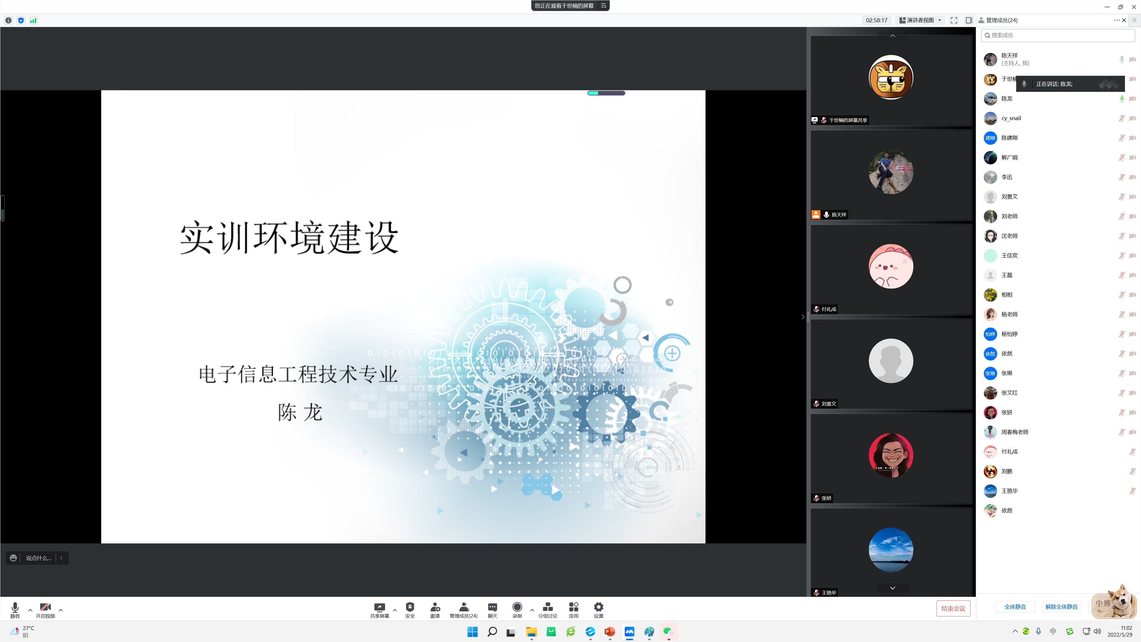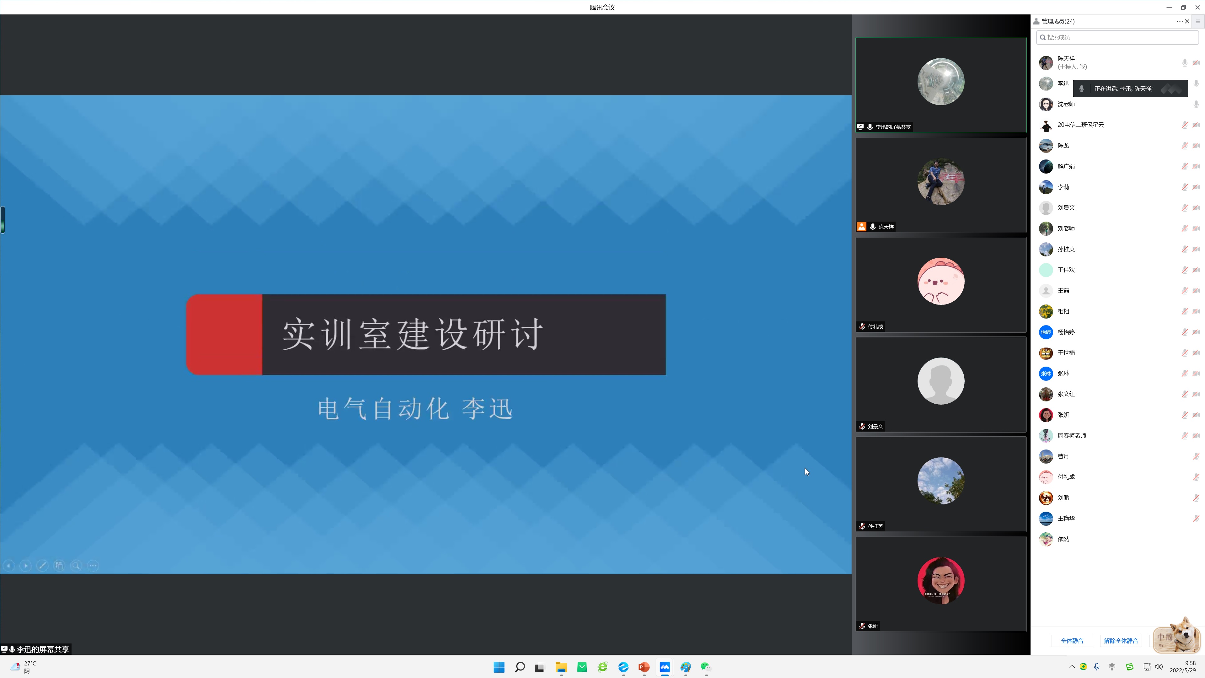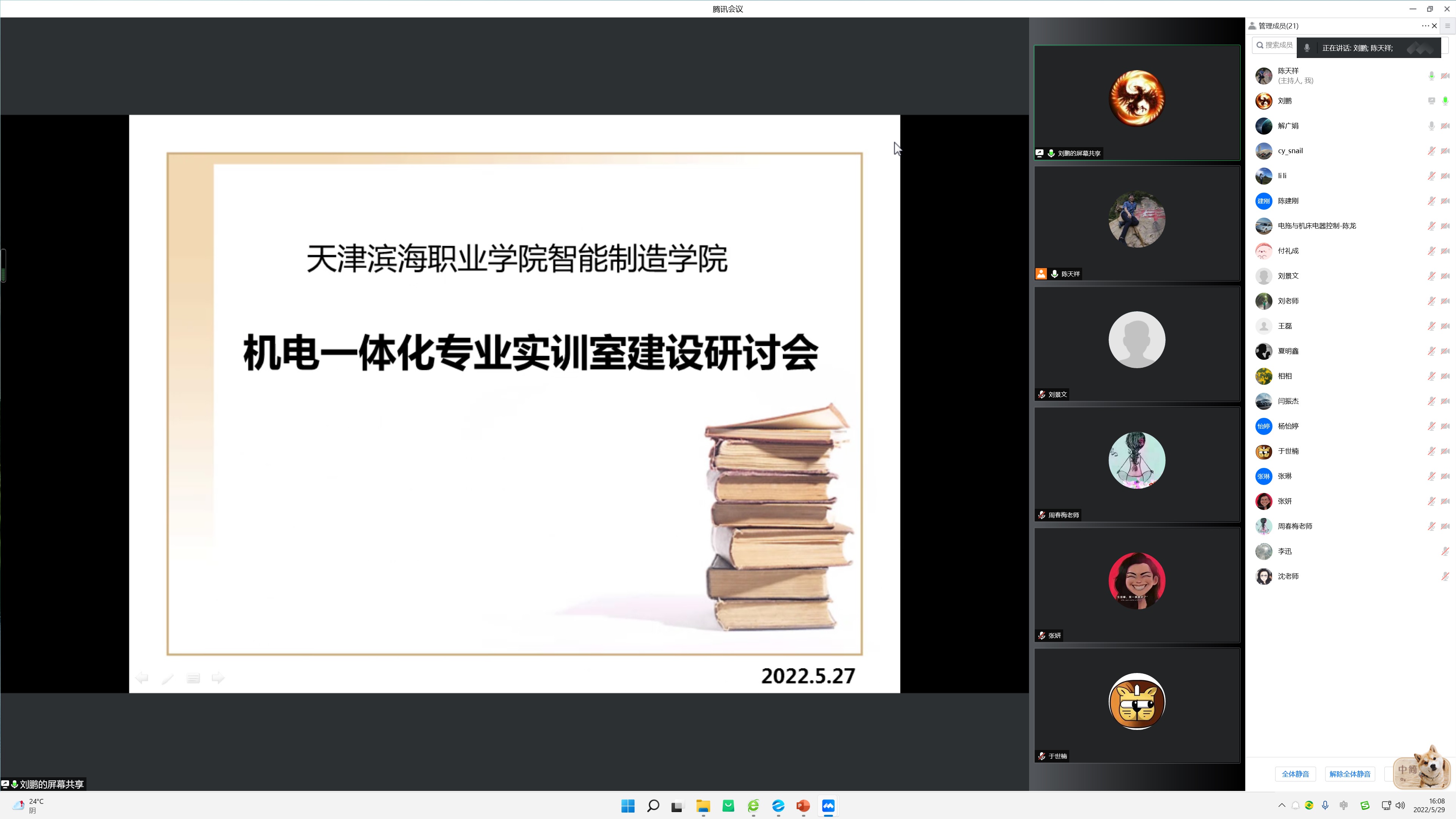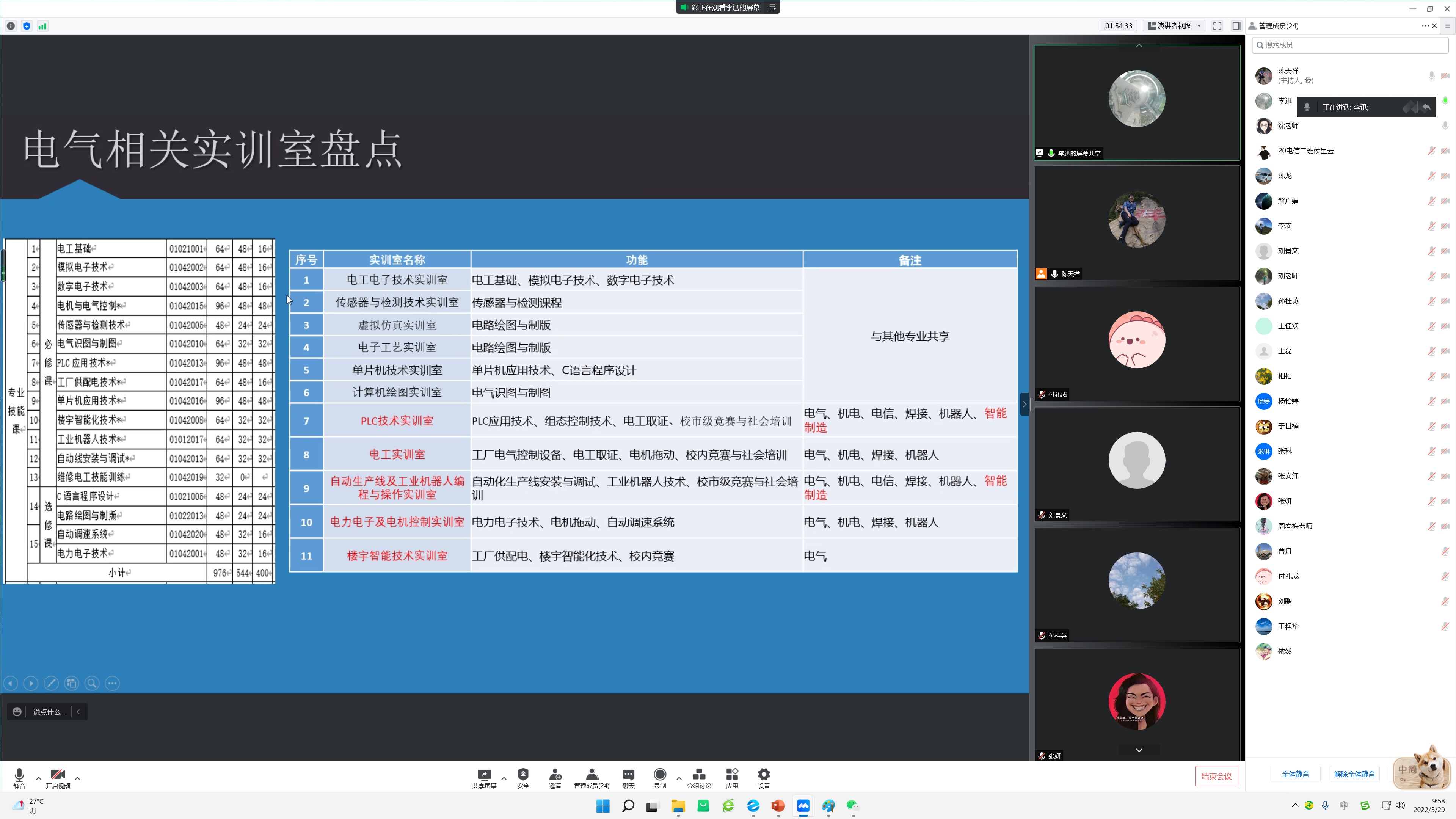 2022年5月29日,智能制造学院通过腾讯会议的方式,组织开展了“教研室主任说专业实训室建设”活动。活动由陈天祥主持,智能制造学院班子成员、各专业负责人、支部委员会委员及全体专业教师均参加了此次活动。